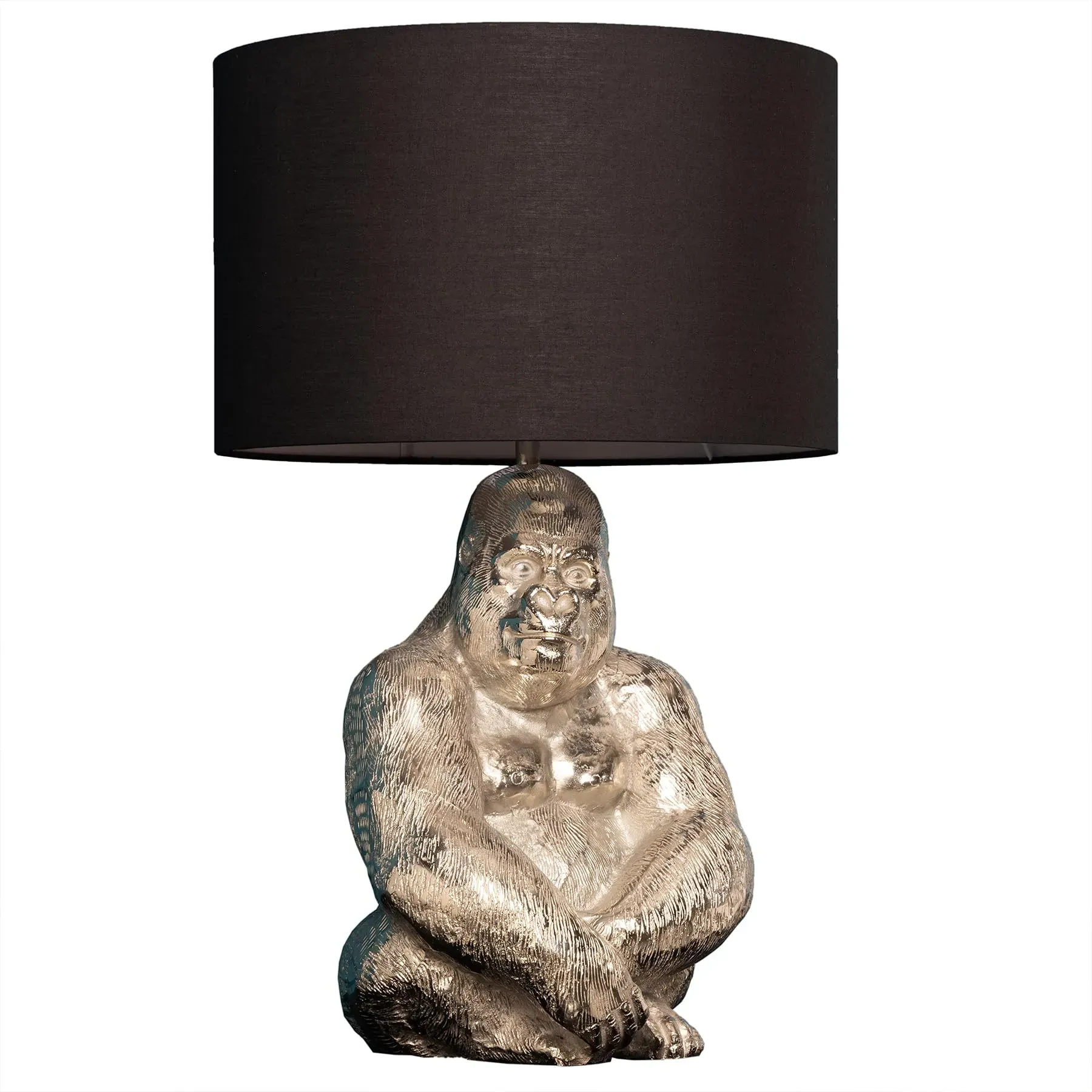 Gewöhnlich versandfertig in 2 bis 3 Tagenriess-ambiente.de Design Tischlampe Kong 60cm Silber Metall Affenlampe schwarzer Lampenschirm Wohnzimmer