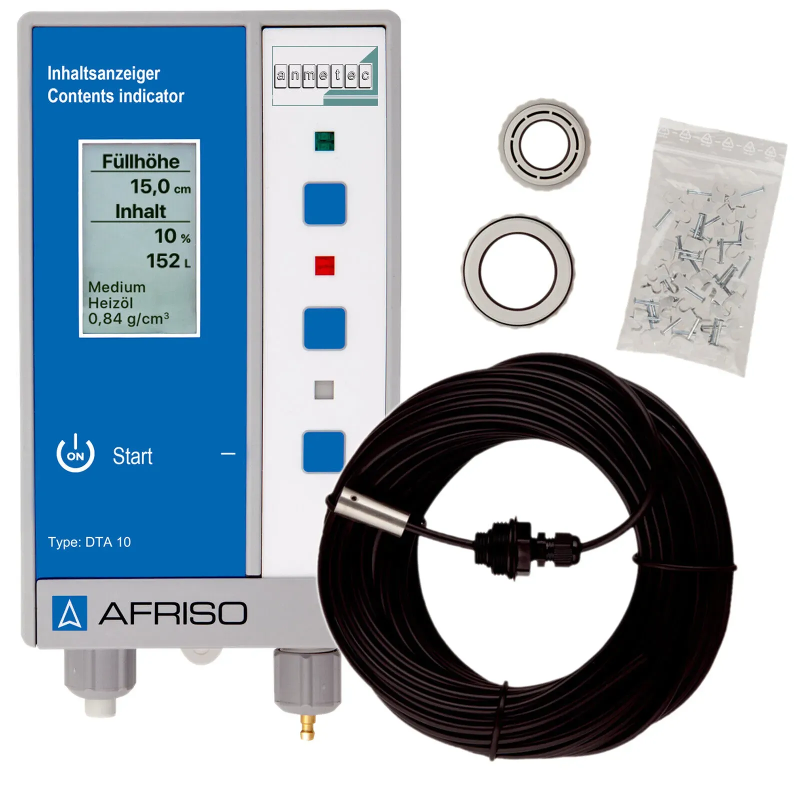 Zustand: Neu - Zentralheizungen & Zubehör - Afriso - DTA 10 - EAN: 4251297308706 - Digitaler Tankinhaltsanzeiger DTA 10 von Afriso für Heizöl EL, L, Dieselkraftstoff, Biodiesel, Wasser und weitere Medien mit Dichte 0,5 bis 1,5 g/cm³ Ortsunabhängige Füllstandmessung mit digitaler Anzeige und Meldung eines Minimalfüllstandes (Reservemeldung) im Rahmen eines Messvorganges Geeignet für Behälter bis max. 400 cm Füllhöhe Die Messwertanzeige erfolgt in Liter, % und Füllhöhe (cm) Einfache Bedienung und Geräteeinstellung über drei Funktionstasten - Verkäufer: anmetec im amazon.de Marketplace ![]() ![]() Tankinhaltsanzeiger Afriso - DTA 10