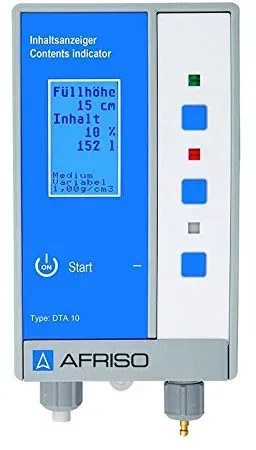 Afriso dta 10 META PreisvergleichMit dem Meta-Preisvergleich suchen Sie gleichzeitig bei den großen Preisvergleich Portalen!Jetzt live Suche nach afriso dta 10 starten! Afriso dta 10 KaufberatungDer Afriso DTA 10 ist ein digitaler Tankinhaltsanzeiger zur Füllstandsmessung in Behältern bis zu 400 cm Höhe, geeignet für Heizöl EL, L, Dieselkraftstoff, Biodiesel (FAME 100 %) und Wasser (kein Trinkwasser)[3][5][11]. Er arbeitet elektro-pneumatisch, ist batteriebetrieben und zeigt den Füllstand in Litern, Prozent oder cm an. Eine Fernmessung bis 15 m ist möglich, und bei Unterschreitung eines einstellbaren Minimalfüllstandes gibt das Gerät optisch Alarm[3][11]. Wichtige Produktmerkmale: