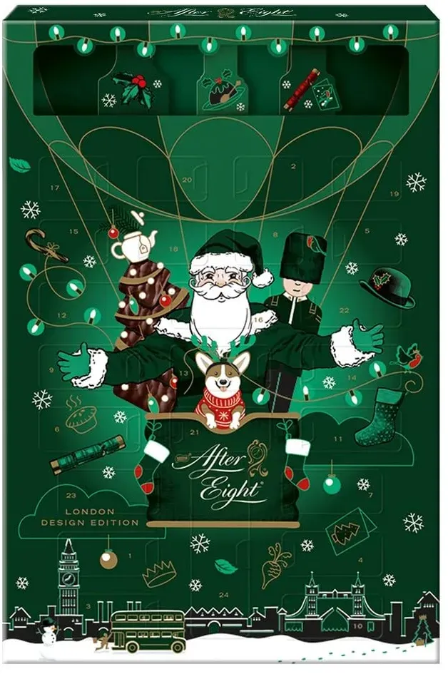 Auf Lager Versand durch AmazonAdventskalender 2025 mit Schokoladenfiguren mit Minzfüllung, London-Design, Winter Pralinés, Pralinen glutenfrei aus dunkler Schokolade, Weihnachtskalender für Minz-Liebhaber, 1er Pack (1 x 196g)