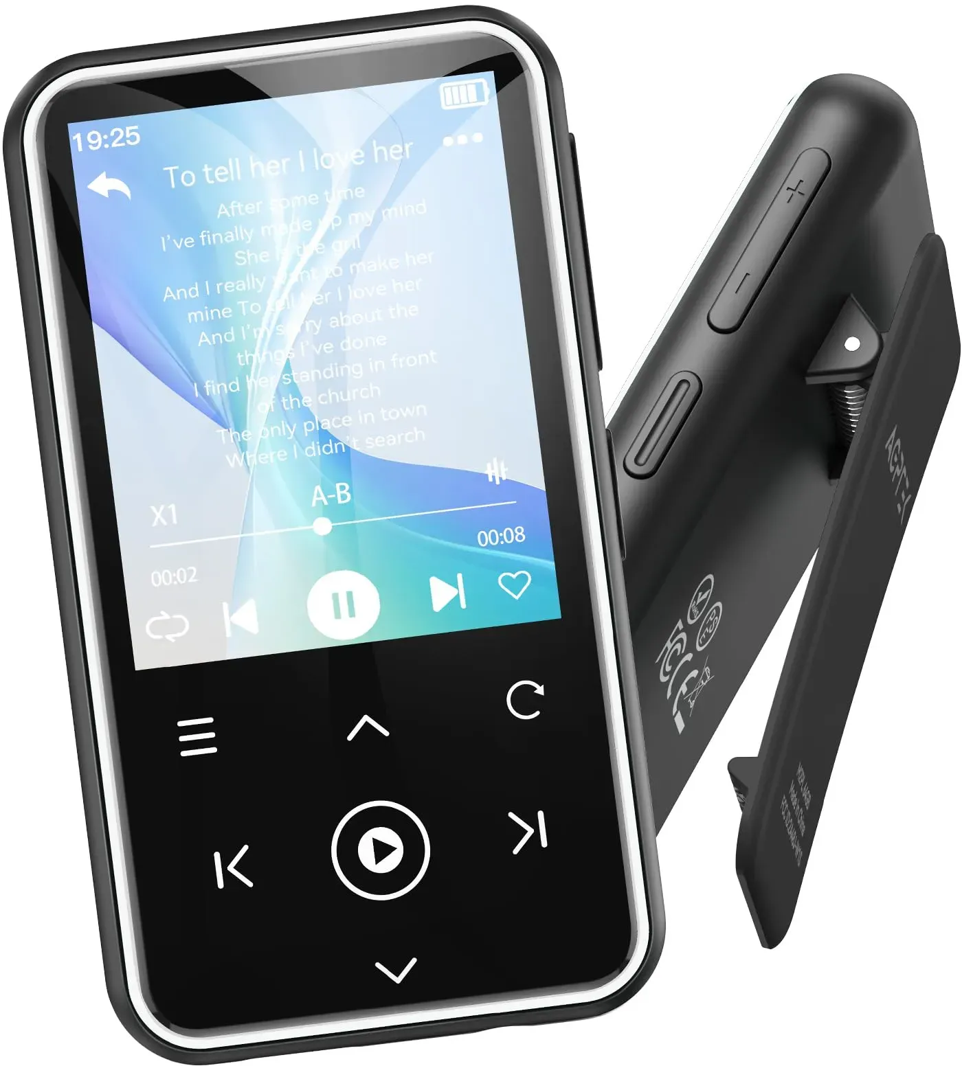 Kategorie: MP3-Player - agptek - Clip-Design & Leicht Das gezackte Clip-Design befestigt sich sicher an jedem Kleidungsstück. Mit einem Gewicht von nur 36 g ist es so leicht, dass du es beim Training kaum bemerkst. Ausgestattet mit einem Armgurt, der dir während des Trainings die Hände freihält. Ideal für Laufen, Fitness, Tennis, Skateboarding und andere Sportarten. Auch ein unverzichtbarer Musikplayer für Reisen und den Arbeitsweg. Bluetooth 5.3 & Automatische Wiederverbindung Der MP3-Player verwendet das neueste Bluetooth 5.3-Technologie und bietet eine stabilere Verbindung. Sie können den MP3 Player Bluetooth mit kabellosen Kopfhörern oder einem Bluetooth-Lautsprecher koppeln. Es unterstützt die automatische Wiederverbindung mit zuvor gekoppelten Geräten. (Unterstützt keine Verbindung mit Phone und Tablets) 64GB großer Speicher & HiFi-Sound 64 GB großer interner Speicher, um mehr verlustfreie HiFi-Musik zu speichern. Sie können auch eine TF-Karte mit bis zu 128 GB zur Erweiterung verwenden. Unterstützt die Musikformate MP3/WMA/APE/FLAC/WAV/DRM/ACELP.(Hinweis: Um die Geschwindigkeit der übertragung zu verbessern, bitte die Größe jedes Ordners auf maximal 1GB. ) 1,8' TFT Farbbildschirm & Touch Taste Der 1,8-Zoll-TFT-Farbbildschirm sorgt für eine einfache Lesbarkeit. Unabhängige Lautstärketasten und Touch-Tasten sorgen für eine reibungslose Bedienung. Der Musikplayer mit kontrastierenden Farben erfüllt die Bedürfnisse von Technikbegeisterten und modischen jungen Menschen ... Für 28.55 Euro erhalten Sie einen Sport-MP3-Player mit Clip und 1,5 Zoll TFT Farbbildschirm, perfekt für unterwegs. ![]() ![]() AGPTEK MP3 Player Bluetooth 5.3 Sport 64GB mit 1,5 Zoll TFT Farbbildschirm, Mini Musik Player mit Clip, Unterstützt bis 128GB SD Karte, Blau