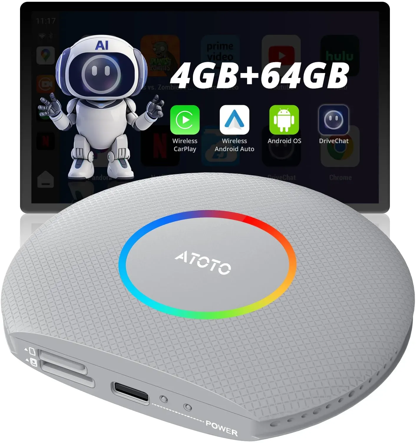 Verfügbarkeit: Auf Lager - Kategorie: Car-Multimedia-Systeme - atotozone - Rüsten Sie auf kabellose Konnektivität auf: Mit der CB6 Android Box verwandeln Sie Ihr kabelgebundenes CarPlay oder Android Auto in eine drahtlose Version für ein nahtloses Erlebnis, selbst wenn Ihr Stereo ursprünglich nur eine Breite Kompatibilität: Kompatibel mit fabrikinstallierten und nachgerüsteten Autoradios, die über kabelgebundenes CarPlay oder Android Auto verfügen, unabhängig von der Marke, macht es zu einer vielseitigen Aufrüstung für jedes Fahrzeug Erweitern Sie Ihr Autoradio mit einem externen Android-Betriebssystem für Internetzugang über Wi-Fi, Bluetooth-Tethering und 4G LTE. 8 GB RAM + 128 GB ROM bietet verbesserte Leistungsunterstützung und Nutzungsmöglichkeiten Hinweis zur WLAN-Verbindung: Bei der Nutzung von drahtlosem CarPlay oder Android Auto empfehlen wir, über das integrierte 4G LTE ins Internet zu gehen. Alternativ kann BT2. WLAN wird während der Nutzung von drahtlosem CP oder AA NICHT unterstützt Zugang zu beliebten Apps: Sie können Apps aus dem Google Play Store oder unserem FindApps App Store erhalten. Während Sie Ihre Lieblingsapps direkt auf dem Bildschirm Ihres Autos nutzen, wird Split-Screen für einen individuellen Gebrauch unterstützt Funktionsreiche Software: Sie können kundenspezifische Software wie DriveChat verwenden (Sprachassistent basierend auf ChatGPT), TrackHU GPS-Tracker, Bluetooth OBD-Diagnose-App und ... Die atotozone CB6 bietet Android 13, 4G LTE und 5G Wi-Fi, was sie zu einer schnellen und modernen Option für Konnektivität und Streaming macht. ![]() ![]() atotozone CB6 CarPlay AI Box Android 13, Wireless CarPlay & Android Auto Wireless mit/YouTube, AI Dongle mit GPS-Tracking, 4G LTE, 5G Wi-Fi, Dual Bluetooth, SIM-und TF-Karte, 4G+ 64G, Silbergrau