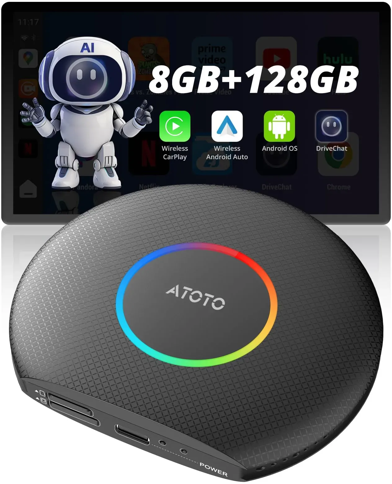 Verfügbarkeit: Auf Lager - Kategorie: Car-Multimedia-Systeme - OTTOCAST - ð Das ultimative Infotainment-Trifecta fürs Auto!Schluss mit Kabelsalat und altmodischer Technik! Unsere OttoAiBox E2 ist der revolutionäre 3-in-1-Zauberer, der Ihr Fahrerlebnis sofort transformiert. Sie vereint Wireless CarPlay, Wireless Android Auto und ein komplettes Android 13-System alles in einer kompakten Box. Das ist nicht nur ein Upgrade das ist eine echte Car-Tech-Revolution! Wenn Sie den besten Wireless-CarPlay- und Android-Auto-Adapter suchen, sind Sie hier genau richtig! ð¿ Unterhaltung ohne Ende nie wieder langweilige Fahrten!Im Stau oder beim Warten? Verwandeln Sie Ihren Bildschirm in ein privates Kino! Dank des intelligenten Android 13 können Sie Ihre Lieblings-Apps wie Netflix, YouTube, TikTok, Prime Video oder Google Maps direkt herunterladen und genießen. Langeweile war gestern! (Unterstützt bis zu 256 GB MicroSD ideal für Offline-Film-Marathons. Hallo, Retter der Wartezeit!) Dieser CarPlay-Netflix-Adapter macht jede Pause zum Erlebnis! ð Blitzschnelle Performance & stabile Verbindung!Ruckeln? Vergessen Sies! Mit 8-Kern-CPU, 4 GB RAM + 64 GB Speicher, Bluetooth 5.0 und Dualband-WLAN (2,4/5 GHz) liefert die E2 unglaubliche Geschwindigkeit. Außerdem stehen vier Netzwerkoptionen bereit: Smartphone-Hotspot, Fahrzeug-WLAN, Nano-SIM oder Cloud-SIM. Mit dem Ottocast Wireless CarPlay Adapter wird Ihr Auto zu einem echten Smart ... Diese atotozone CB6 Variante bietet mit 8GB RAM und 128GB Speicher eine hohe Leistung und viel Platz für Apps und Medien. ![]() ![]() atotozone CB6 CarPlay AI Box, Wireless CarPlay &Android Auto mit/YouTube, AI Dongle mit GPS, Android 13, 4G LTE, 5G Wi-Fi, Dual Bluetooth, SIM-und TF-Karte, OTA-Upgrade, 8G+ 128G, Schwarz