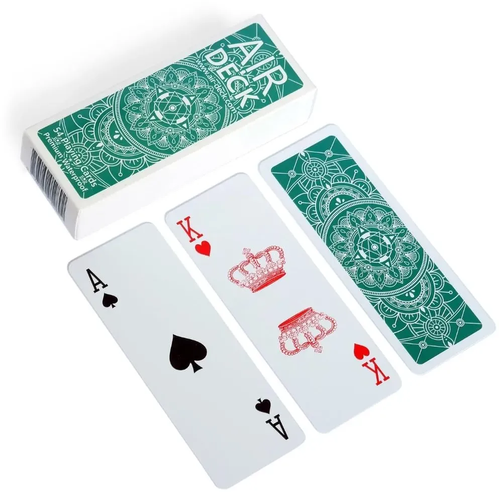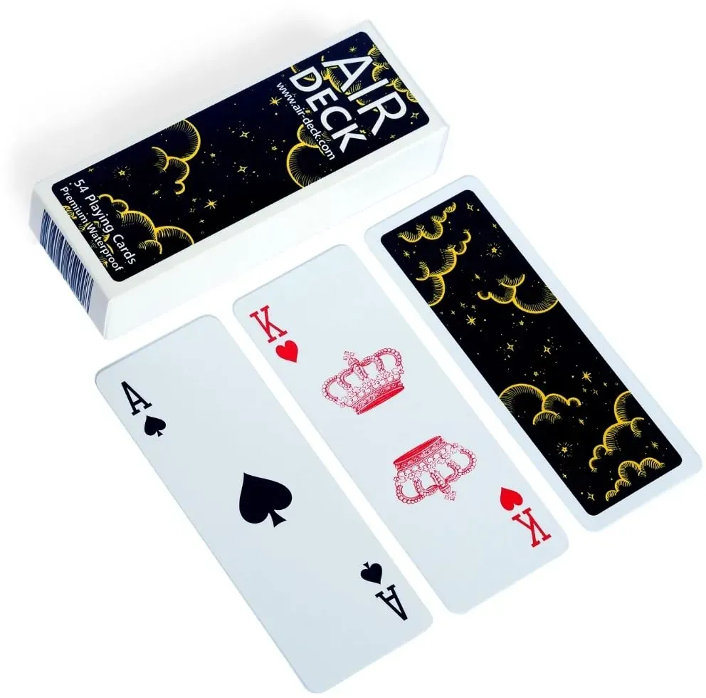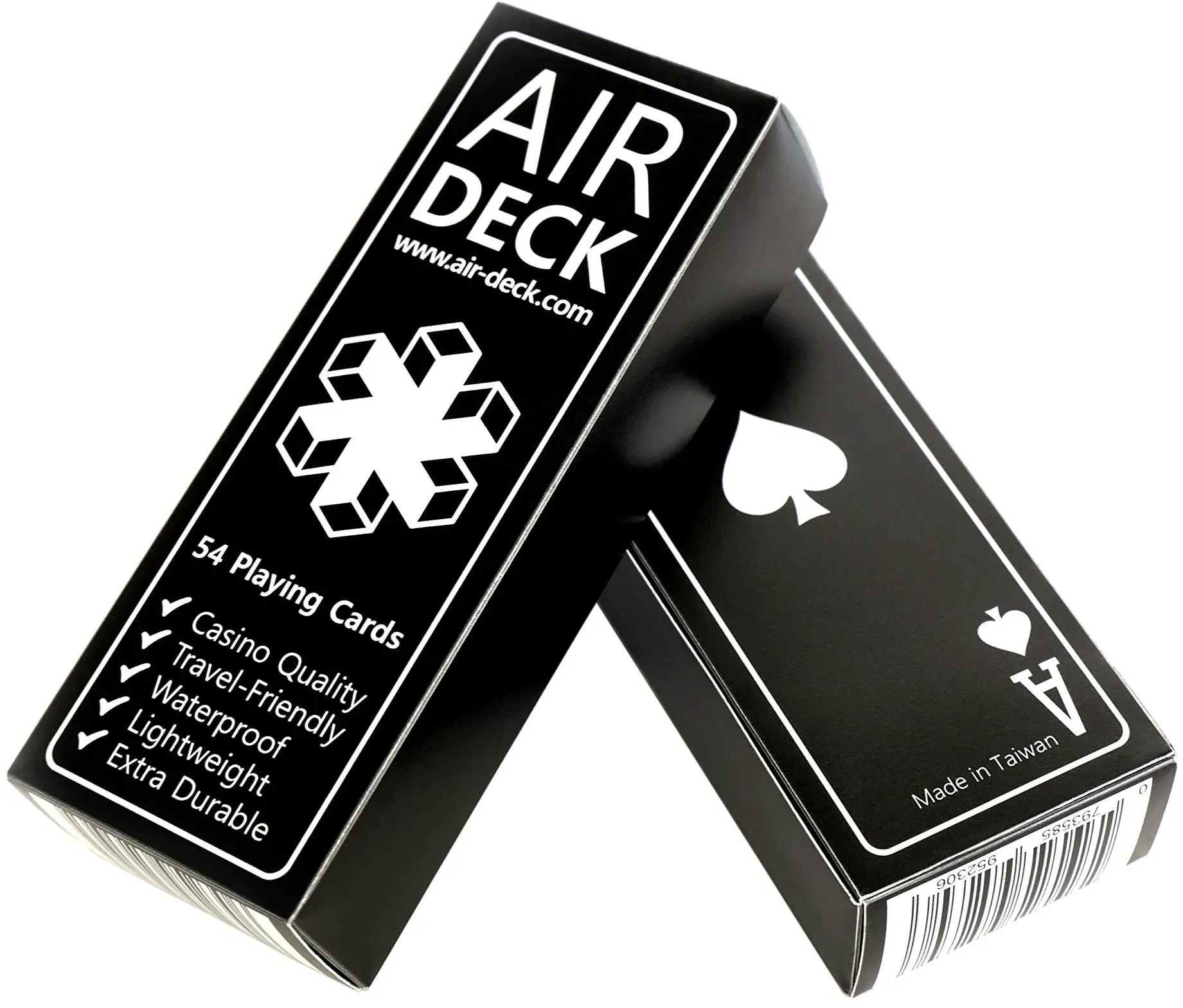 Kategorie: Poker - Air Deck - GTIN:4255649952937 - ULTRALEICHTES DESIGN: Die Air Deck Spielkarten wurden speziell für Reisende und Outdoor-Enthusiasten entwickelt. Dank ihres leichten Gesamtgewichts von nur 75g inklusive Schachtel und 54 Spielkarten, passen sie in jede Tasche. WASSERFEST & STRAPAZIERFäHIG: Genießen Sie dieses Kartenspiel an jedem Ort diese Karten sind vollständig wasserfest und strapazierfähig. Ob Strand, Camping oder auf Reisen, diese Karten sind immer spielbar. HOCHWERTIG & KOMPAKT: Mit einer optimierten Größe, die den perfekten Kompromiss zwischen Spielbarkeit und Kompaktheit bietet, sind diese Karten ideal für unterwegs. DAS PERFEKTE GESCHENK: Diese Air Deck Spielkarten kommen in einem modernen Design, das sowohl klassische als auch innovative Spielelemente vereint. Ideal für Spielabende, als Geschenk oder als trendiges Reiseaccessoire., Hersteller: Tip Top Things Ltd - 14,50 Euro bei Amazon Marketplace Toys - gefunden von billiger.de Die Air Deck Kickstarter Waterproof Playing Cards sind eine innovative und wasserfeste Lösung für alle, die ihre Spielkarten auch unter feuchten Bedingungen nutzen möchten. ![]() ![]() Air Deck - Kickstarter Waterproof eBay Playing Cards Spielkarten Poker Cardistry Magic