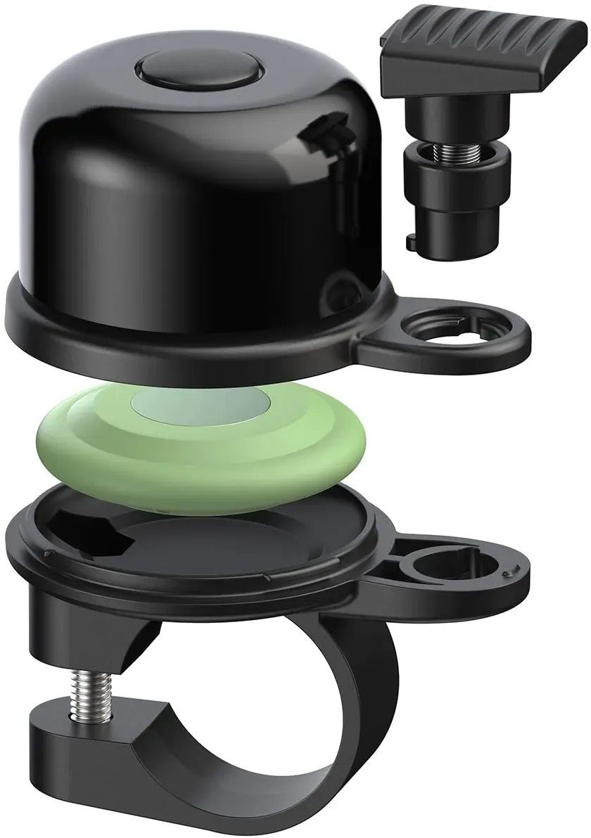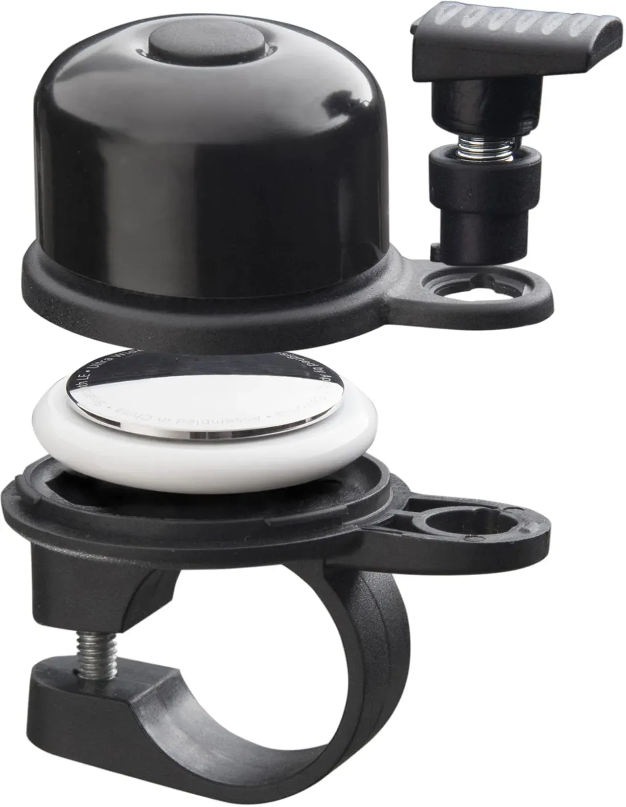 lieferbar-in 2-3 Werktagen bei dirM-Wave Messingschlager Fahrradklingel AirBell, mit AirTag-Fach, Lenker 22.2mm schwarz
