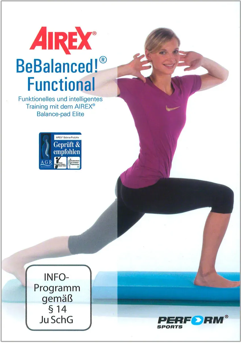 Kategorie: Filme - GTIN:4051086082288 - DVD 'AIREX BeBalanced! Functional', 54 Min.. Die DVD 'Airex BeBalanced! Functional' ist ein funktionelles und intelligentes Training mit dem Airex Balance-Pad Elite. Airex BeBalanced! ist das Konzept zum Training auf dem Airex Balance-Pad. Mit dem AGR Siegel ausgezeichnet, ist das Airex Balance-Pad ein wichtiges Tool im gesunden und rückengerechten Balance-, Toning- und Cardioworkout. Die Kombination von Airex Balance-Pad Elite und anderen Physiotools wie Flexibar oder XCO stellt den Körper vor ganz neue, intensive und sensomotorische Aufgaben. Die Professional Stunde mit dem Airex Balance-Pad zeigt die vielen Möglichkeiten mit den Tools für ein außergewöhnliches Training. - 19,90 Euro bei Sport-Tec - gefunden von billiger.de ![]() ![]() DVD BeBalanced Toning - Training mit dem Airex Balance Pad