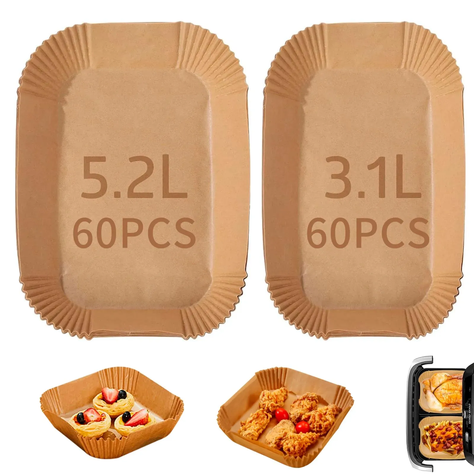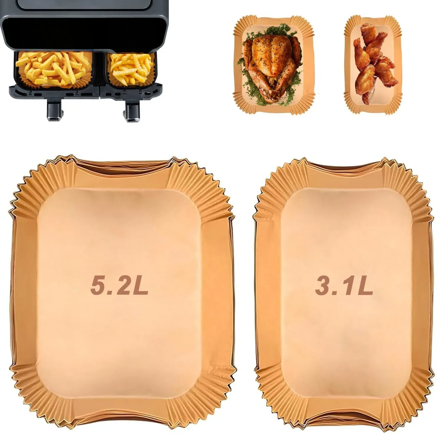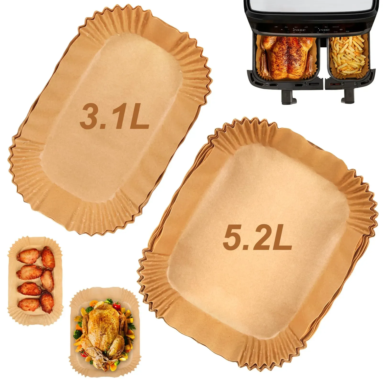 Auf Lager Versand durch AmazonBackpapier für Heißluftfritteuse 6L/3L Kombinatorisch für Philips Airfryer Dual Basket 3000/5000 Series Kompatibilität Tefal Doppelkammer 5,2/3,1L 100 Stück Airfryer Backpapier