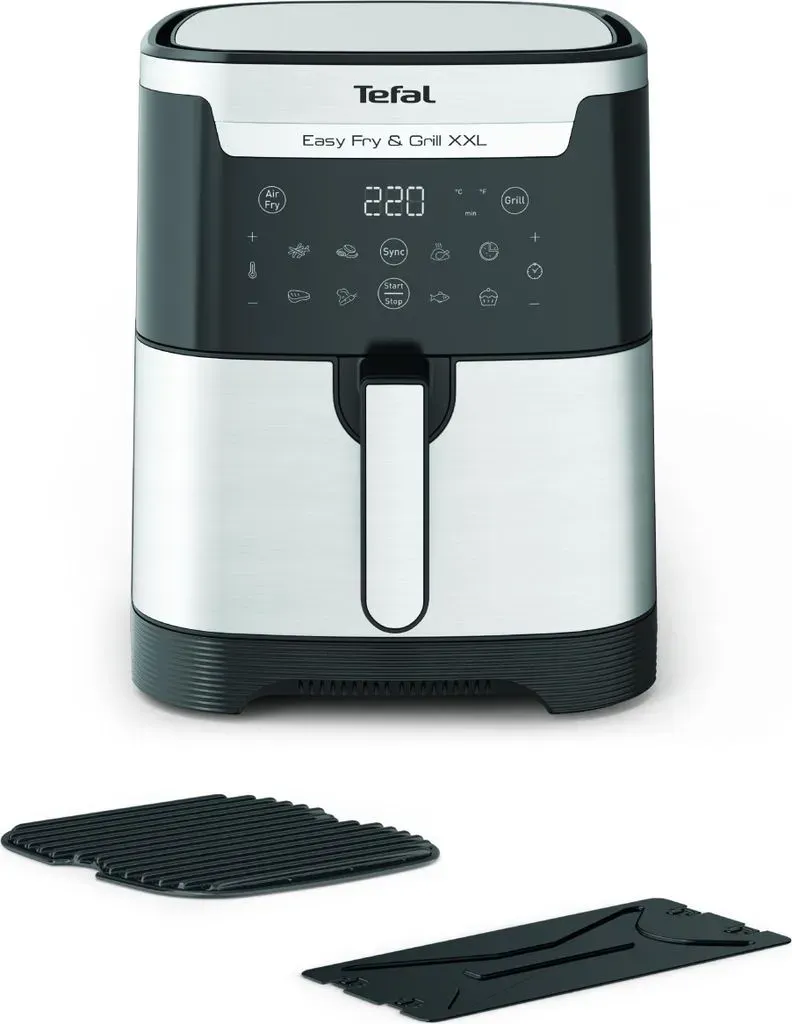 10 Händlerangebote bei billiger.de - Kategorie: Fritteusen - Tefal - Der Tefal Easy Fry & Grill ist eine 2-in-1-Heißluftfritteuse (Airfryer) mit XXL-Kapazität für schnelle Ergebnisse, dank Dual-Cooking, bei dem zwei verschiedene Zutaten zubereitet werden können, die gleichzeitig fertig sind. Die intelligente Synchronisationsfunktion für ausgewählte Automatikprogramme sorgt dafür, dass zwei verschiedene Zutaten perfekt gelingen und gleichzeitig fertig sind. Kochen Sie mit 2 separaten, personalisierten Kochzonen mit der abnehmbaren Flexcook-Trennwand, um von der XXL-Kochfläche für besonders große Zutaten auf Dual-Kochen für eine vollständige Mahlzeit in einem Durchgang umzustellen. Der Easy Fry & Grill verfügt über 8 automatische Garprogramme (Pommes, Nuggets, Brathähnchen, Pizza, Fleisch, Fisch, Gemüse, Dessert) für immer perfekte Mahlzeiten und endlose Möglichkeiten. Für perfekte Ergebnisse können Sie für jede einzelne Kochzone ein Automatikprogramm einstellen. Der Tefal Easy Fry & Grill verfügt über einen Grill aus Aluminiumguss für perfektes Grillen, mit Antihaftbeschichtung und nahezu rauchfreiem Grillen. - GTIN:3045387248253 Ein günstiges Angebot für den TEFAL EY801D Easy Fry & Grill XXL, das eine gute Gelegenheit für Schnäppchenjäger darstellt. ![]() ![]() TEFAL EY801D - Easy Fry eBay & Grill XXL Heißluftfritteuse - Silber/Schwarz