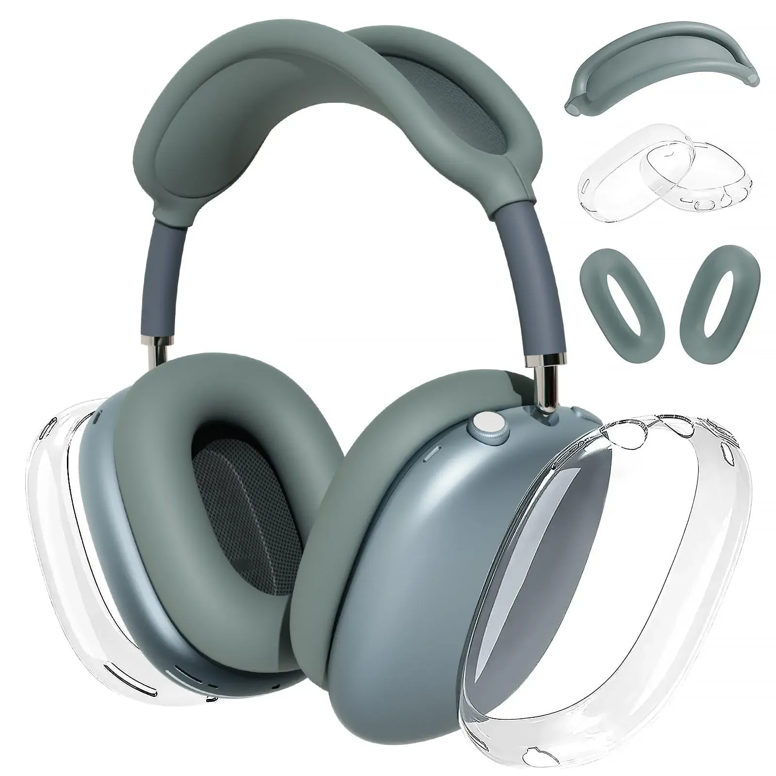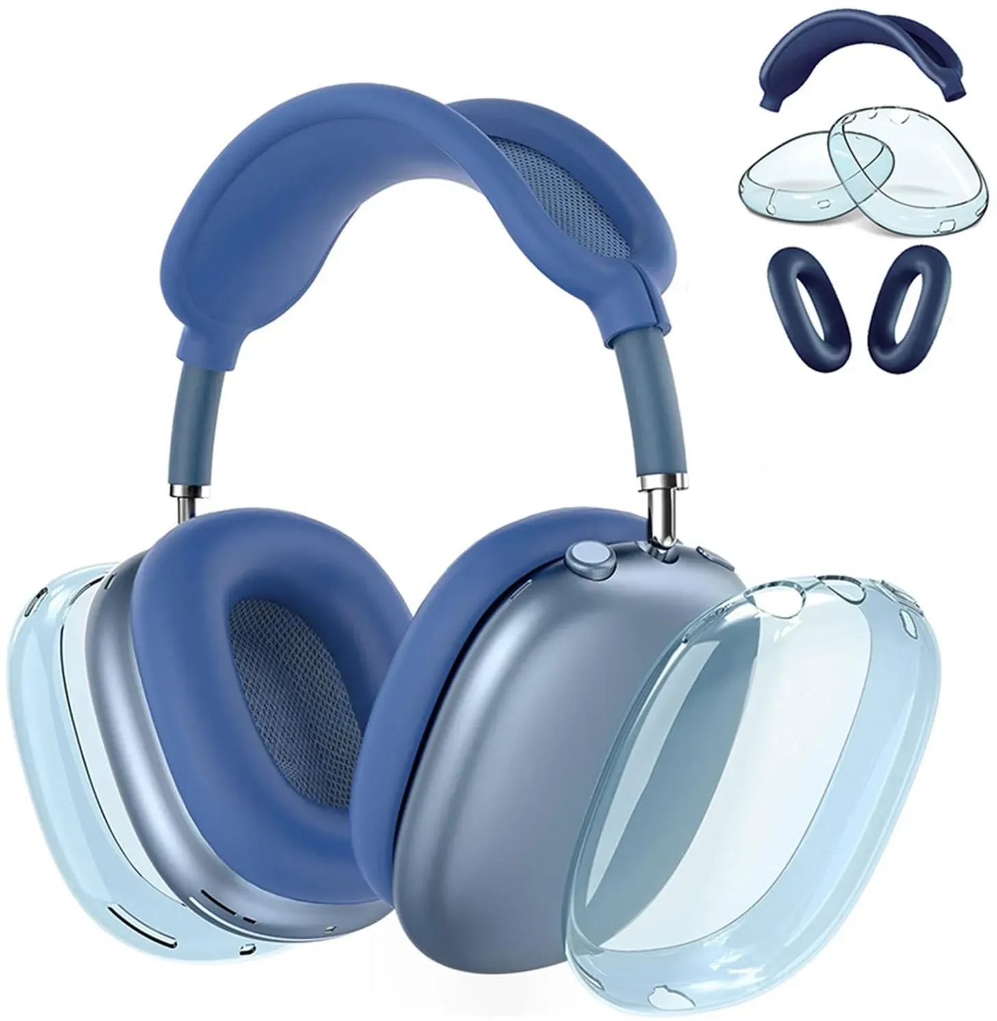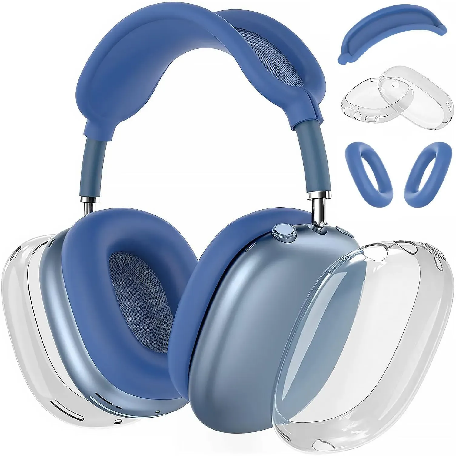 Auf Lager Versand durch AmazonFycyko 3-in-1 Hülle Kompatibel mit Airpods Max (2024/2020),Transparente Silikon Hülle, AirPods Max,Airpods Max Zubehör-Blau