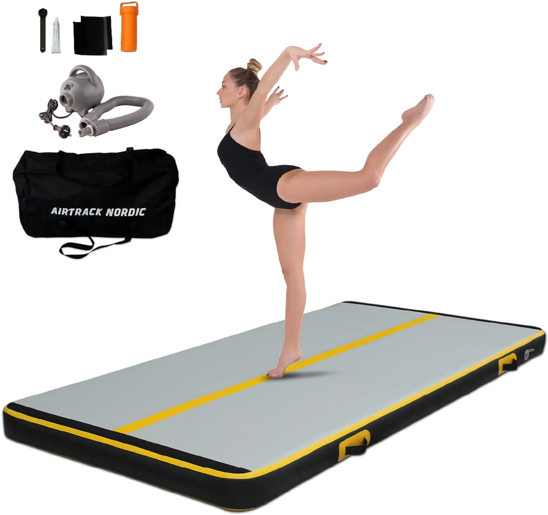 AirTrack Nordic - EAN: 6438543005659 - Der AirTrack Nordic Carbon ist ein hochwertiges, langlebiges und vielseitiges Luftkissen mit Carbonfaser-ähnlichen Kanten. - bei decathlon.de - aus Yadore Produktdaten Diese 4m Deluxe Wide Airtrack Matte ist mit 2m Breite und 20cm Dicke eine der breitesten und dicksten Optionen für maximale Stabilität und Komfort. ![]() ![]() AIRTRACK NORDIC Deluxe Wide Airtrack Mat 3m - 16m mit Pumpe, 2m extra breit und 20cm extra dick Turnmatte Aufblasbar - Matte Sport, Air Track Gymnastikmatte (4)