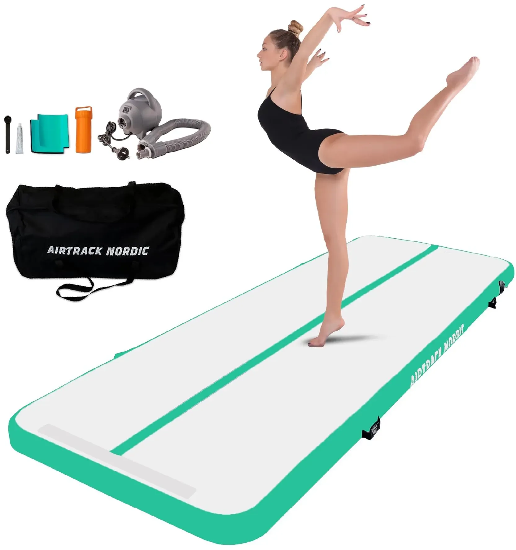 Verfügbarkeit: Auf Lager - Kategorie: Bodenmatten - Airtrack Nordic - GTIN:6438543006410 - Nachhaltig & Wetterfest €“ Diese aufblasbare AirTrack Gymnastikmatte besteht aus hochwertigem, wasserdichtem und UV-beständigem PVC. Die Luft bleibt auch bei häufiger Outdoor-Nutzung stabil €“ ideal als Turnmatte für Zuhause, Garten oder Sporthalle. Komplettset mit Luftpumpe & Zubehör €“ Inklusive elektrischer Luftpumpe (EU-/DE-Stecker), Tragetasche und Anleitung. Die faltbare Turnmatte lässt sich schnell aufpumpen und einfach verstauen €“ ideal für Yoga, Fitness, Gymnastik oder unterwegs. Klappbar & Tragbar €“ Dank faltbarem Design ist die aufblasbare Matte leicht zu transportieren und platzsparend zu lagern. Geeignet als Gymnastikmatte, Trainingsmatte, Fitnessmatte oder Sportmatte für Indoor und Outdoor. Anpassbare Härte für alle Altersgruppen €“ Der Luftdruck kann individuell reguliert werden €“ für Kinder, Jugendliche und Erwachsene. Auch als schwimmende Fitnessmatte im Wasser geeignet. Robust & Langlebig mit n €“ Aus strapazierfähigem Drop-Stitch-Material gefertigt, bis 150 kg/m2 belastbar. Perfekt für Turnen, Cheerleading, Kampfsport, Fitnessübungen oder als vielseitige Sportmatte. - 699,00 Euro bei Amazon Marketplace Sports - gefunden von billiger.de Die 8m Carbon AirTrack in Minze ist eine Top-Empfehlung für maximale Leistung und Haltbarkeit. ![]() AirTrack Nordic Carbon, 3-8m - Minze - 8 m grün 800 CM