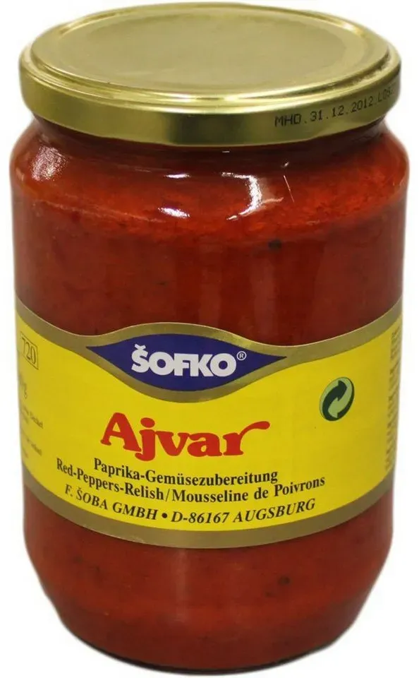 Verfügbarkeit: lieferbar-in 3-4 Werktagen bei dir - 7.89€/1l - Kategorie: Fertiggerichte - Sofko - GTIN:4008194300223 - Zutaten Zutaten , Paprika 80%, Auberginen 7%, scharfe Pfefferoni 5%, Sonnenblumenöl 4%, Zucker, Salz, Knoblauch, Branntweinessig., Hinweise Aufbewahrungshinweise , Kühl und trocken., Artikelbezeichnung Bezeichnung des Lebensmittels , Sofko Ajvar Paprika und Aubergine Gesmüsezubereitung scharf 720ml, - 5,68 Euro bei OTTO - gefunden von billiger.de Für umweltbewusste Käufer ist dieses Bio-Ajvar eine empfehlenswerte Option, auch wenn es im oberen Preissegment liegt. ![]() ![]() Marschland Bio-Ajvar scharf, 200 g