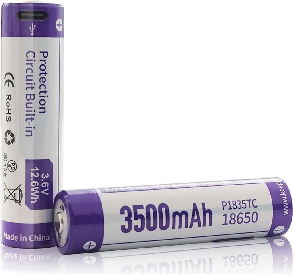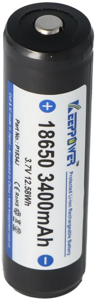 Kategorie: Batterien & Akkus - Keeppower - GTIN:6970906554218 - Keeppower 18650 - 3500mAh, Li-Ionen 3,7V - 3,6V - PCB geschützt, mit USB-C Lademöglichkeit P1835TCDer Akku ist länger als die handelsüblichen 18650 Akkus !!! 72mm Leistungsstarke 18650 Li-Ion-Akku mit integrierten Micro-USB Ladebüchse. Das Aufladen kann durch die USB C-Buchse oder wie gewohnt in einem Ladegerät erfolgen. Die verbaute Elektronik schützt den Akku vor Tiefentladung, überhitzung und Kurzschluss.Keeppower P1835TC sicher, leistungsstark und zuverlässig Laden Sie ihre Akkus im Ladegerät oder unterwegs an jeden beliebigen USB-5V Anschluss, (Smartphone Netzteil, Powerbank, Laptop usw.), somit bleiben sie Flexibel und haben immer eine Lademöglichkeit zur Hand. Beachten Sie bitte vor dem Kauf die Maße der Zelle! Durch die eingebaute Elektronik ist die Zelle nicht für jede Anwendung geeignet! Höhe und Durchmesser sind größer als eine Standard 18650 Zelle ohne PCB. Verwendete IndustriezellePanasonic NCR18650GAKapazität3500mAh 12,6Whmin. Kapazität3400mAhNennspannung3,6V - 3,7VLadeschlussspannung4,2V 0,05Standard Ladestrom mit Ladegerät 0,xx - 1,5AStandard Ladestrom mit USB0,7Amax. Entladestrom2,6C = 8A (8000 mA)Entladeschlussspannung2,50VSchutzvorhanden (integriert)Pluspolerhöht (Button Top)Durchmesser18,8 mm 0,20 mmHöhe72,00 mm 0,30 mmGewicht49,8 g 1 g Verwendete Industriezelle Panasonic NCR18650GAKapazität 3500mAh 12,6Whmin. Kapazität 3400mAhNennspannung 3,6V - 3,7VLadeschlussspannung 4,2V 0,05Standard ... Der Panasonic Akku NCR18650 PF ist eine bewährte Wahl mit 2900mAh und PCB-Schutz, bekannt für seine Zuverlässigkeit. ![]()