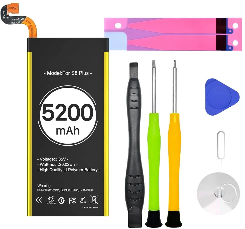 Verfügbarkeit: Auf Lager - Kategorie: Batterien & Akkus - LCLEBM - [2025 Verbesserter hochwertiger Akku] - Der neue 0-Zyklus-Akku für das Galaxy S8 Plus besteht aus einer Premium-Lithium-Polymer-Akkuzelle, ein Akku der Klasse A+ wird mit einem CE- und ROHS-zertifizierten Produkt geliefert und bietet Ihrem Telefon eine Lebensdauer von über 1000 wiederholten Akkuladezyklen mit hoher Leistung. Geschwindigkeit und effizientes Laden. Bringen Sie die Akkulaufzeit Ihres Galaxy s8 plus zu neuem Glanz und sparen Sie das Geld für ein Upgrade. [Upgrade auf 5200mAh Kapazität] - S8 Plus Akkuwechsel mit fortschrittlicher Technologie macht die Akkukapazität für Samsung S8 Plus auf bis zu 5200mAh bei gleicher Größe, jeder Akku mit einem speziellen Chip soll Ihr Galaxy S8 Plus Handy kurz vor überhitzung schützen -Stromkreis, überladung oder überentladung. Für extra lange Sprechzeit, Standby-Zeit und Langlebigkeit mit hervorragender Sicherheit. [Kompatibilitätsmodell] €“ Geeignet für alle Samsung Galaxy S8 Plus-Varianten €“ Galaxy S8 Plus SM-G955, G955V (Verizon), G955A (AT&T), G955T (T-Mobile), G955P (Sprint), G955R4 (US Cellular), G955 (Unlocked), G955 (C Spire), G955 (Xfinity), G955 (TracFone). Gleiche Akkulaufzeit wie der Original-Akku des Galaxy S8 Plus. [Um eine optimale Leistung zu erzielen] - Beachten Sie bei der Verwendung des S8 Plus-Akkus, dass Sie die gesamte Batterieleistung die ersten drei Male vor dem Aufladen verbrauchen und dann vollständig aufladen, ... Dieser Akku von PolarCell bietet eine leicht erhöhte Kapazität von 3200mAh und wird mit einem Profi-Set für den Austausch geliefert. ![]() ![]() PolarCell Akku für Samsung Galaxy S8 SM-G950F | ersetzt Original-Akku EB-BG950ABE | mit Werkzeug & Rahmenkleber im Profi-Set | 3200mAh Starke Ersatz-Batterie | selektierte A+ Qualitätszellen