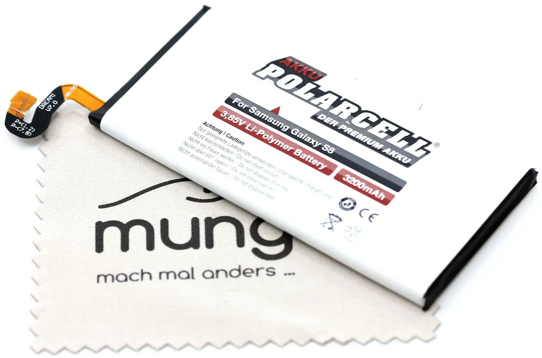 Verfügbarkeit: Auf Lager - Kategorie: Handy Akkus - Polarcell - GTIN:4250222711123 - MAXIMALE LEISTUNG: Mit seiner 3200mAh Li-Polymer Zelle ist der PolarCell Akku der stärkste erwerbbare Ersatz-Akku für dein Samsung Galaxy S8 dieser Bauart, höchste Kapazität für eine maximale Laufzeit. Ersetzt die Original Akkus EB-BG950ABE und EB-BG950ABA und kann wie gewohnt mit Ihrem vorhandenen Ladegerät geladen werden. OPTIMIERTE PASSFORM: 100% passgenau für Ihr Samsung Galaxy S8, so dass keine weiteren Zubehörteile notwendig sind. Passend für Samsung Galaxy S8 SM-G950F / SM-G950U / SM-G950A / SM-G950P / SM-G950T / SM-G950V / SM-G950W / SM-G950R4 / SM-G9500 / SM-G9508 / SM-G950FD. Jedes PolarCell Akkumodell wird individuell für die jeweiligen Geräte optimiert, so ist eine präzise Passform rt. DEUTSCHE MARKENWARE MIT MAXIMALER SICHERHEIT: PolarCell Akkus gibt es hier kostenoptimiert direkt vom Hersteller - Neuware, streng kontrolliert nach allen EU-Normen. überlade-, Hitze- und Kurzschlussschutz sind bei PolarCell selbstverständlich, verwendet werden ausschließlich A+ Qualitätszellen. EINFACHE INSTALLATION DANK PREMIUM WERKZEUG: Das mitgelieferte Profi-Werkzeugset macht den Umbau mühelos möglich. Ein Dichtungs-Kleber für das Backcover wird mitgeliefert. Wir empfehlen Ihnen, sich vor dem Akku Tausch einige Video-Anleitungen anzuschauen. KEINE KOMPROMISSE, RT: Sie erhalten 24 Monate kostenlosen Austausch bei Defekt. Kontaktieren Sie bitte im Falle eines Problems ... Dieser Polarcell Ersatzakku für das Samsung Galaxy S8 bietet eine gute Qualität und wird mit einem Displayputztuch geliefert. ![]() ![]() mungoo mach mal anders ... Ersatz Akku passend für Samsung Galaxy S8 (G950F) (Ersetzt Originalakku EB-BG950ABE) Polarcell mit mungoo Displayputztuch