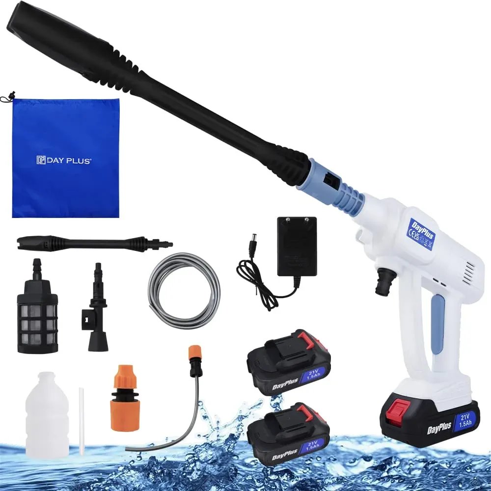 Verfügbarkeit: Auf Lager - Kategorie: Hochdruckreiniger - QiMu - ÂKabelloser Kraftreiniger- Der tragbare Hochdruckreiniger ist mit einem leistungsstarken 12-Bar-Motor ausgestattet, der Wasser bis zu 3 L / min sprühen kann.Der wiederaufladbare 21-V-Li-Ionen-Akku hält nach dem vollständigen Aufladen 30 Minuten lang, liefert genügend Strom für die Außenreinigung ,genießt den Komfort des kabellosen Betriebs. ÂWasser von überall ziehen- Der 5 m lange Schlauch mit Filterkorb kann Verunreinigungen wie Partikel, Abfallblätter oder Schlamm effektiv filtern, leicht Wasser aus Eimer, Pool, Fluss oder einer beliebigen Wasserquelle entnehmen, was viel Wasser und Arbeitszeit spart und unseren Hochdruckreiniger besser schützt.Die beste Wahl für Camping im Freien oder lange Reisen. ÂTragbares Design und mehrere Funktionen- Dieser Hochdruckreiniger wiegt nur etwa 1,55 kg, das kompakte Design und das leichte Gehäuse erleichtern dem Benutzer die Steuerung mit einer Hand oder das Tragen. Ideal für verschiedene Haushalts-, tägliche Heimwerkerprojekte wie saubere Autos, Fahrräder, Motorräder oder Abstellgleis, Boden, Schwimmbäder, Garten, Möbel, Balkone, Fenster, Terrassen, sogar Bewässerungsanlagen, Haustierbaden usw. ÂEinstellbare Düse für Ihre verschiedenen Bedürfnisse- Der kabellose elektrische Hochdruckreiniger verfügt über eine 0-180 ° verstellbare Düse: Sprühen, Freistrahl, Schauminjektion, Hochdruckdirekteinspritzung. Berühren Sie die Modustaste, um den ... Für unter 40 Euro bietet dieser Akku-Hochdruckreiniger eine gute Balance aus Preis und Leistung für grundlegende Reinigungsarbeiten. ![]() ![]() Shkalacar Akku Hochdruckreiniger, Hochdruckreiniget Mit Akku Und Ladegerät 24 V 1500 Mah, 3,5 Bar Wiederaufladbarer Akku Elektrischer Zum Waschen Von Autos, Gießen Von Blumen, Reinigen Von Böden