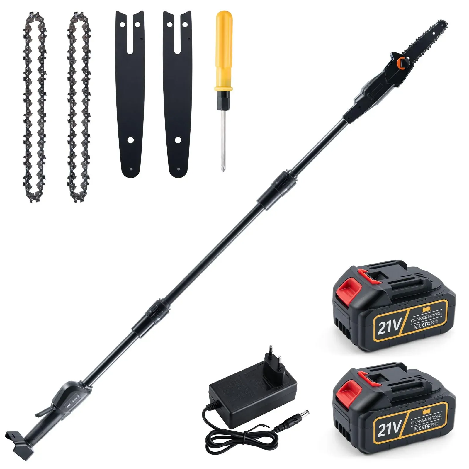 Kategorie: Kettensägen - CHANGEMOORE - Hochleistungs-Bürstenloser Motor: Der bürstenlose Motor aus reinem Kupfer ist effizienter, läuft leiser und hat eine längere Lebensdauer als Bürstenmotoren. Dieses Design erfordert weniger Wartung, bietet eine gleichmäßigere und präzisere Leistung und einen zuverlässigen, leistungsstarken und genauen Betrieb, was es zur idealen Wahl für Anwendungen macht, bei denen Zuverlässigkeit und geringerer Verschleiß erforderlich sind. 3-teilige Stange, einstellbare Länge: Die kabellose Astsäge hat ein 3-teiliges Design: Sägekopf x1, Verlängerungsstange x1, Sägeschwanz x1. Ermöglicht einstellbare Längen von 1,2 m (mit Sägekopf und Verlängerungsstange) bis 1,68 m (mit allen drei Abschnitten), sodass Sie sicher höhere äste erreichen können, ohne eine Leiter zu benötigen. Leistungsstarker 775-W-Motor: Diese bürstenlose Hochentastersäge ist mit einem leistungsstarken 775-W-Motor aus reinem Kupfer ausgestattet, der bis zu 24.000 U/min erreichen kann, um schnell, reibungslos und effizient äste und Bäume zu schneiden. Hochgeschwindigkeits-Schneidleistung: Elektrische Kettensäge besteht aus einer starken Stange aus Aluminiumlegierung und einer robusten Kettensäge aus Manganstahl und kombiniert Haltbarkeit mit Tragbarkeit.Mit einer Kettengeschwindigkeit von 10 m/s und einer Kettenlänge von 15 cm liefert diese Akku-Kettensäge schnelle, saubere und präzise Schnitte und ist damit ideal zum Beschneiden von Bäumen und ästen. Ergonomisch und sicher in der ... Ein solides Einsteigermodell von Bosch, ideal für Nutzer, die bereits im 18V-System von Bosch sind und einen zuverlässigen Hochentaster ohne Akku suchen. ![]() ![]() Bosch Akku Hochentaster UniversalChainPole 18 (Ohne Akku und Ladegerät, 18V System)