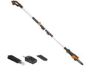 5 Werktage in_stock - Garten & Freizeit Gartenmaschinen Kettensägen & Zubehör Astsägen Elektrogartenwerkzeug - EAN:4078500054317 - Gardena Akku-Teleskop-Hochentaster TCS 20/18V P4A solo Produktnummer: 0687250457 Der GARDENA Akku-Teleskop-Hochentaster TCS 20/18V P4A kommt zum Einsatz, um den Baumschnitt sicher vom Boden aus zu erledigen. Durch den teleskopierbaren Stiel ist das Auslichten und Entasten in bis zu 4 Meter Höhe möglich. Dank des leichten und schmalen Schneidkopfes können auch Äste an engen Stellen in der Baumkrone mühelos entfernt werden. Der abwinkelbare Schneidkopf sorgt für zusätzlichen Komfort. Man kann aber auch bequem Schneidarbeiten am Boden erledigen, zum Beispiel um Äste in handliche Stücke zu zerkleinern. Der Schneidanschlag an der Spitze des Schneidblattes unterstützt beim Schneiden an der Astunterseite dabei, den Akku-Teleskop Hochentaster stabil in der gewünschten Position zu halten und schützt gleichzeitig die Kette bei bodennahem Schneiden. Die Energie liefert ein 18 V System Akku der Power for All Alliance, basierend auf der Akku-Technologie von Bosch. Dieser passt in alle neuen 18V Gartengeräte von GARDENA der Power For All Alliance, kann aber auch markenübergreifend mit zahlreichen weiteren Produkten aus der Allianz rund um das gesamte Zuhause verwendet werden. (Akku und Ladegerät nicht im Lieferumfang enthalten). 18 Volt Li-Ion /2,5 Ah ohne Akku und Ladegerät 20 cm Schwertlänge max. 30 Minuten Laufzeit max. bis zu 200 Schnitte (Astdurchmesser ... Dieser WORX Hochentaster bietet eine gute Reichweite und kommt direkt mit Akku und Ladegerät, was ihn zu einem attraktiven Komplettpaket macht. ![]() Akku-Hochentaster WORX '20V Akku Hochentaster, 20cm, Teleskopgriff max. 3,6m', schwarz, Gartenscheren-Maschinen, inklusive 20V/2Ah Akku und Ladegerät