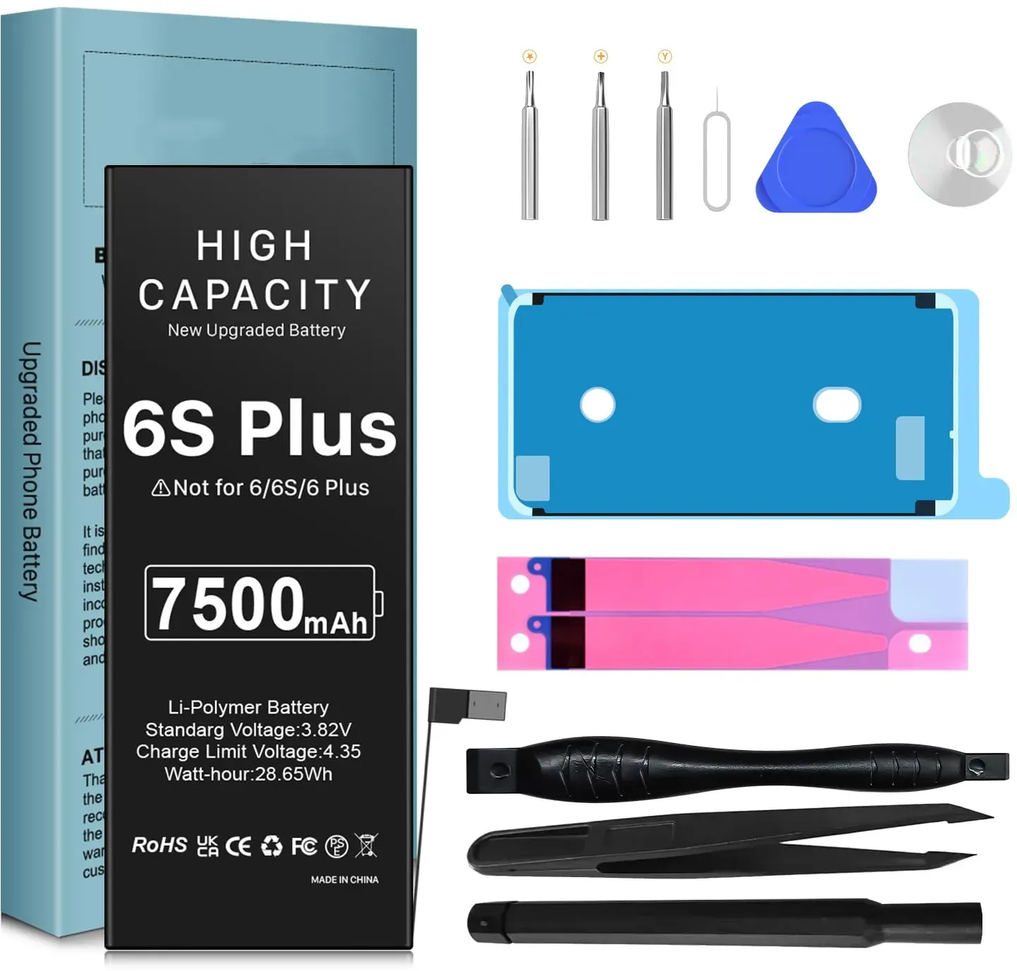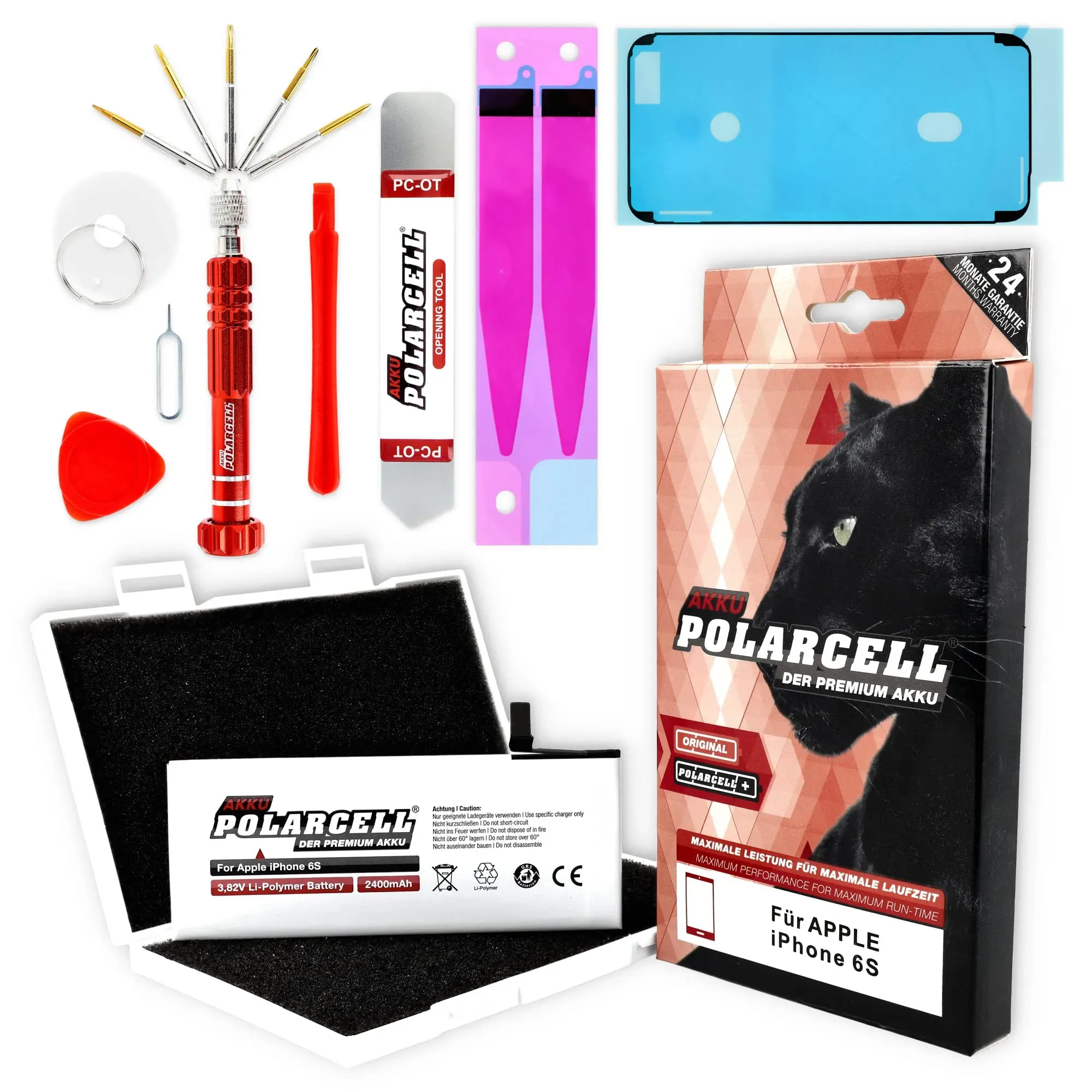 Verfügbarkeit: Auf Lager - Kategorie: Handy Akkus - Polarcell - GTIN:4250222791545 - MAXIMALE LEISTUNG: Mit seiner 2250mAh Li-Polymer Zelle ist der PolarCell Akku der stärkste erwerbbare Ersatz-Akku für dein iPhone 6S dieser Bauart, höchste Kapazität für eine maximale Laufzeit. Ersetzt die Original Akkus APN 616-00033 und APN 616-00036 und kann wie gewohnt mit Ihrem vorhandenen Ladegerät geladen werden. OPTIMIERTE PASSFORM: 100% passgenau für Ihr Apple iPhone 6S, so dass keine weiteren Zubehörteile notwendig sind. Jedes PolarCell Akkumodell wird individuell für die jeweiligen Geräte optimiert, so ist eine präzise Passform rt. DEUTSCHE MARKENWARE MIT MAXIMALER SICHERHEIT: PolarCell Akkus gibt es hier kostenoptimiert direkt vom Hersteller - Neuware, streng kontrolliert nach allen EU-Normen. überlade-, Hitze- und Kurzschlussschutz sind bei PolarCell selbstverständlich, verwendet werden ausschließlich A+ Qualitätszellen. EINFACHE INSTALLATION DANK PREMIUM WERKZEUG: Das mitgelieferte Profi-Werkzeugset macht den Umbau mühelos möglich. Ein Dichtungs-Kleber für das Display und Klebestreifen zur Fixierung des Akkus werden mitgeliefert. Wir empfehlen Ihnen, sich vor dem Akku Tausch einige Video-Anleitungen anzuschauen. KEINE KOMPROMISSE, RT: Sie erhalten 24 Monate kostenlosen Austausch bei Defekt. Kontaktieren Sie bitte im Falle eines Problems direkt PolarCell als Hersteller. PolarCell steht für optimierte Produkte und erstklassigen Service - weniger als 100% ... Dieser Akku für das iPhone 6S Plus bietet eine extrem hohe Kapazität und wird mit professionellen Werkzeugen geliefert. ![]() ![]() LCLEBM [7500mAh] Akku für iPhone 6S Plus, (2025 neues Upgrade) Hochkapazitäts-Akku mit 0 Zyklen zum Austausch für iPhone 6S Plus,A1634,A1687,A1699 mit professionellen Werkzeugen