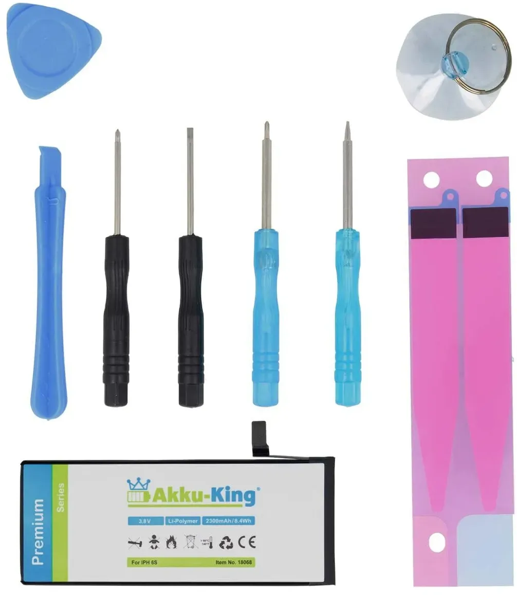 Verfügbarkeit: Auf Lager - Kategorie: Zubehör für Elektrowerkzeug - Gadfull - GTIN:4260403930632 - HOCHERGIEBIGER ERSATZAKKU: Professionell hergestellt & so entwickelt, dass er mit seinen 2200 mAh eine WESENTLICH größere Kapazität bietet. Das sind 585 mAh mehr als die des Originalakkus in deinem iPhone 6S. Mit 28 % höherer Kapazität ist unser Akku ein leistungsstarker Ersatz. Genießen Sie ganztätige Akkukapazität ohne erneute Aufladung. PASST ZU 100 % IN ALLE iPHONE 6S HANDYMODELLE: Production date 2025. Der Ersatzakku entspricht zu 100 % der Originalakkugröße. Es werden also keine zusätzlichen Teile benötigt. WICHTIG: NUR mit iPhone 6S kompatibel, nicht mit anderen iPhone Modellen. MIT REPARATURWERKEZEUGSET & HANDBUCH: Hierbei handelt es sich um das bevorzugte Reparaturset für Smartphoneuser, da es einen Ersatzakku für das iPhone 6S beinhaltet, SOWIE Werkzeuge & eine Anleitung. Die DIY Installieranweisungen sind klar & einfach verständlich. Der Austausch des Akkus dauert demnach nur ein paar Minuten. VERLäNGERT DIE AKKULAUFZEIT IHRES GERäTES: Ersetzen Sie die Batterie Ihres iPhone 6S durch eine mit dem iPhone 6S kompatible Batterie mit der höchsten Kapazität, um die Lebensdauer des Geräts zu optimieren. Weniger Gebühren = bessere Effizienz. GRöSSERE KAPAZITäT DIE RT BEEINDRUCKT: Wir bieten 8,40 Wh mit einer Spannung von 3,82 V. Damit ist unser Akku die beste Wahl für verlängerte Akkulaufzeit. Wir bieten außerdem eine risikofreie ... Ein Power-Akku mit erhöhter Kapazität und inklusive Werkzeugset, was den Austausch vereinfacht. ![]() ![]() Akku-King Power-Akku kompatibel mit iPhone 6S - Li-Polymer 2300mAh - mit öffnungswerkzeug/Klebestreifen (485mAh mehr)