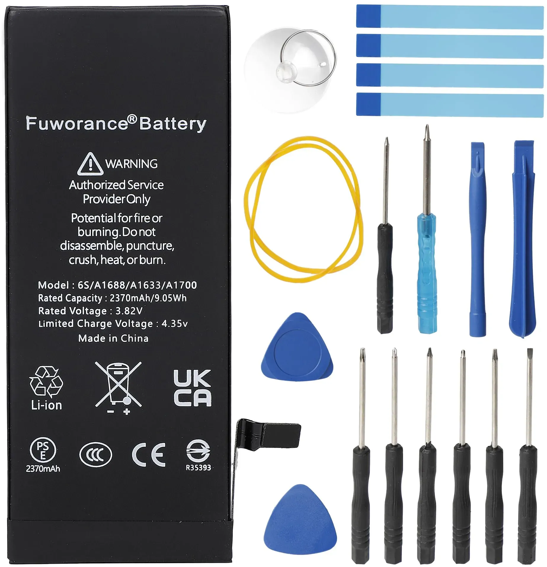 Verfügbarkeit: Auf Lager - Kategorie: Zubehör für Elektrowerkzeug - Guleek - 1.Perfekte Kompatibilität - Vollständig kompatibel mit iPhone 6S Modellen A1633, A1688 und A1700 für eine präzise Passform und fehlerfreie Funktion rt ohne Kompatibilitätsprobleme. 2.Echte 2400mAh Hochkapazität - Bietet verlängerte Akkulaufzeit und längere Standby Zeiten Ihr Phone bleibt den ganzen Tag über einsatzbereit. 3.Intelligentes IC Energiemanagement - Integrierter Chip sorgt für optimiertes Laden, stabile Stromabgabe und verbesserte Effizienz für eine reibungslosere Leistung. 4. Sichere und zuverlässige Nutzung Mit integriertem Schutz vor überladung, überhitzung und Kurzschlüssen für einen sorgenfreien Einsatz. 5.Komplettes DIY Reparaturset - Enthält professionelles Werkzeug und eine Schritt für Schritt Anleitung für einen schnellen und einfachen Akkutausch auch für Einsteiger geeignet. - 16,98 Euro bei Amazon Marketplace CE - gefunden von billiger.de Dieser Akku bietet eine erhöhte Kapazität und wird mit Reparaturwerkzeugen geliefert, was ihn zu einer guten Allround-Option macht. ![]() ![]() Fuworance 2370 mAh 3,82 V Akku kompatibel mit iPhone 6S A1633 A1688 A1700 Akku für Smartphone mit Reparaturwerkzeugen