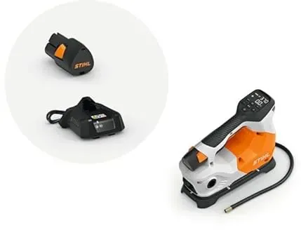 false - Kompressoren Elektrogartenwerkzeug - EAN:0886661333714 - Sie besitzen noch keinen Akku und kein Ladegerät aus dem STIHL AS-System (https://www.stihl.de/de/technologie/akku-technologie/as-system)? Dann ist dieses praktische Set besonders empfehlenswert für Sie. Denn zusätzlich zum Akku-Kompressor STIHL KOA 20 erhalten Sie einen Akku STIHL AS 2 (https://www.stihl.de/de/ap/akku-as-2-107854?aID=EA024006500) und ein Standardladegerät STIHL AL 1 (https://www.stihl.de/de/ap/standardladegeraet-al-1-107869?aID=EA034302500). So können Sie direkt nach der Lieferung mit Ihrer Arbeit beginnen. Der kompakte Akku-Kompressor STIHL KOA 20 ist ideal für das kräfteschonende und zeitsparende Aufpumpen von Auto- oder Fahrradreifen sowie für das das bequeme Aufpumpen und schnelle Entlüften von Freizeit- und Sportgeräten wie Bällen oder Schlauchbooten geeignet. Er leistet nicht nur zu Hause gute Dienste, sondern auch unterwegs, wenn beispielsweise die Räder eines Anhängers aufgepumpt werden müssen. Der Akku-Kompressor STIHL KOA 20 ist einfach zu bedienen. Für die vielseitigen Anwendungen können Sie beim KOA 20 über das ergonomisch angeordnete, von oben gut einsehbare Display unterschiedliche Einstellungen vornehmen. So können Sie beispielsweise per Tastendruck zwischen der Hochdruckfunktion und der Volumenfunktion wählen, den gewünschten Druck einstellen und den Ladezustand des Akkus prüfen. Während des Aufpumpens und des Entlüftens sorgen die Gummifüße des KOA 20 für einen sicheren, ... ![]() ![]() STIHL Akku-Kompressor KOA 20, mit Akku AS 2 und Ladegerät AL1 - AS-System