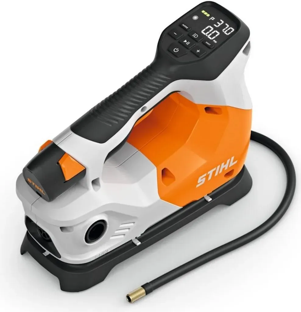 false - Kompressoren Elektrogartenwerkzeug - EAN:0886661685660 - Der kompakte Akku-Kompressor STIHL KOA 20 ist ideal für das kräfteschonende und zeitsparende Aufpumpen von Auto- oder Fahrradreifen sowie für das bequeme Aufpumpen und schnelle Entlüften von Freizeit- und Sportgeräten wie Bällen oder Schlauchbooten geeignet. Er wird mit einem Akku aus dem STIHL AS-System (https://www.stihl.de/de/technologie/akku-technologie/as-system) betrieben. Der Akku-Kompressor KOA 20 leistet nicht nur zu Hause gute Dienste, sondern auch unterwegs, wenn beispielsweise die Räder eines Anhängers aufgepumpt werden müssen. Der Akku-Kompressor STIHL KOA 20 ist einfach zu bedienen. Für die vielseitigen Anwendungen können Sie beim KOA 20 über das ergonomisch angeordnete, von oben gut einsehbare Display unterschiedliche Einstellungen vornehmen. So können Sie beispielsweise per Tastendruck zwischen der Hochdruckfunktion und der Volumenfunktion wählen, den gewünschten Druck einstellen und den Ladezustand des Akkus prüfen. Während des Aufpumpens und des Entlüftens sorgen die Gummifüße des KOA 20 für einen sicheren, vibrationsarmen Stand und das hell leuchtende LED-Licht sorgt bei Dunkelheit für gute Sichtverhältnisse. Zudem verfügt der STIHL KOA 20 über eine automatische Abschaltfunktion: Sobald der gewünschte Druck erreicht ist, stoppt die Pumpe den Aufblasvorgang und nach ca. 5 min ohne Aktivität schaltet sich das Gerät automatisch ab. Das spart Energie und erhöht die Akku-Laufzeit. Zum ... ![]() ![]() Stihl KOA 20 Akku-Kompressor mit Akku AS 2 und Ladegerät AL 1