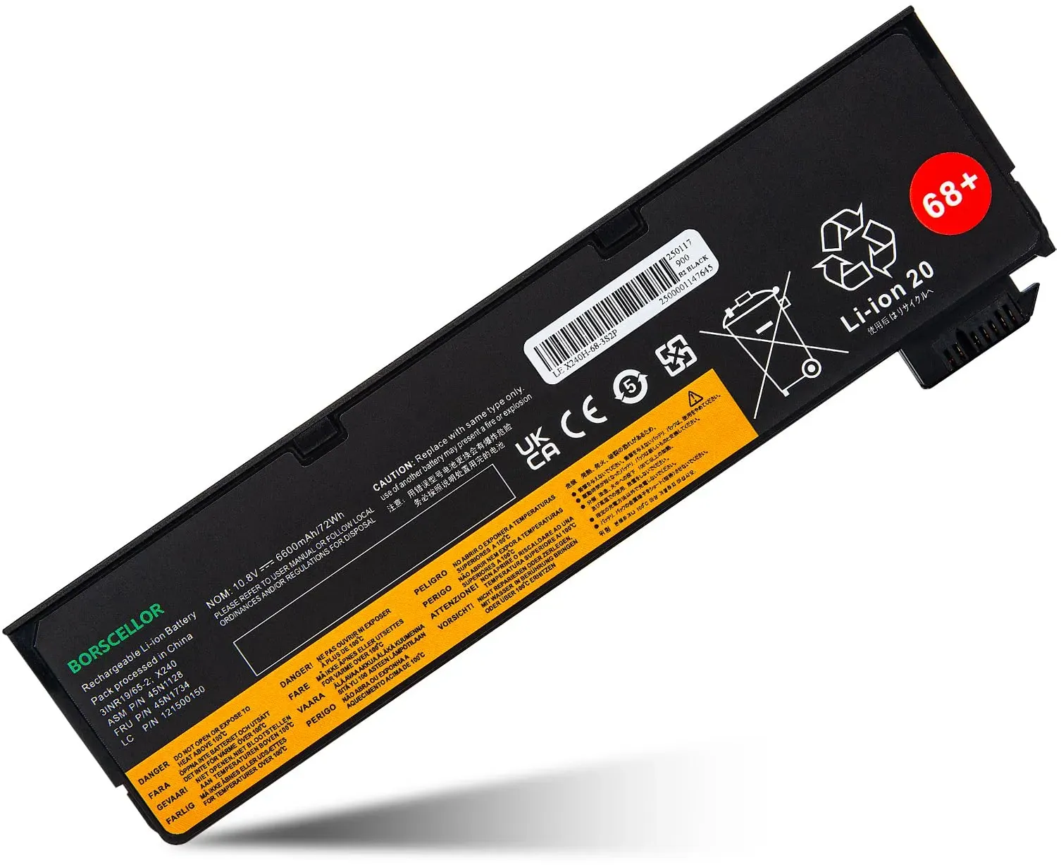 Kategorie: Notebook Akkus - borscellor - Akku Spezifikationen: Modell: 68+ 0C52862 0C52861; Akku-Typ: Wiederaufladbarer Li-Ion-Akku; Kapazität: 72Wh/6600mAh; Spannung: 10,8V; Zellen: 6-Zellen; Batterielebensdauer: Bis zu 1000 Aufladezyklen. HINWEIS: Der Akku ist werksseitig auf Schlafmodus eingestellt. Bitte schließen Sie Ihren Ladeadapter an, um Ihren Laptop nach der Installation des Akkus aufzuladen, um den Schlafmodus zu deaktivieren, sonst lässt er sich nicht einschalten. Kompatible Teilenummer: Kompatibel mit Laptop Lenovo 0C52861 0C52862 0C52863 0C52864 121500146 121500147 121500148 45N1124 45N1125 45N1126 45N1127 45N1128 45N1129 45N1130 45N1131 45N1135 45N1136 45N1160 45N1736 45N1738 0A36303 0A36302. Kompatible Laptop-Modelle: Kompatibel mit Lenovo ThinkPad 68+ (0c52862) L450 L460 L470 L530 P50S T440 T440s T450 T450s T460 T460P. Sicherheit und Schutz: Unser Laptop-Akku ist mit einem integrierten intelligenten Steuerchip ausgestattet, bietet vielseitige Sicherheitsfunktionen, einschließlich Schutz vor überladung, überentladung, überspannung, überstrom und überhitzung. Es bietet umfassenden Schutz, schützt Sie und Ihr Gerät vor potenziellen Risiken und gewährleistet jederzeit eine sorgenfreie Nutzung. Vertrauens und Kundenservice: Wir vertrauen unerschütterlich an die Qualität und Leistung unserer Laptop-Akkus. Genau deshalb bieten wir eine 12-monatige und den ganzen Tag E-Mail-Support. Wenn Sie irgendwelche Probleme haben, klicken Sie einfach auf 'Verkäufer ... Dieser Akku bietet eine hohe Kapazität von 4400mAh/49Wh zu einem attraktiven Preis, was ihn zu einer guten Wahl für eine längere Nutzung macht. ![]() ![]() Eneron Laptop Akku X240 11.1V 4400mAh/49Wh für Lenovo T440 T440s T450 T450s X240 X250