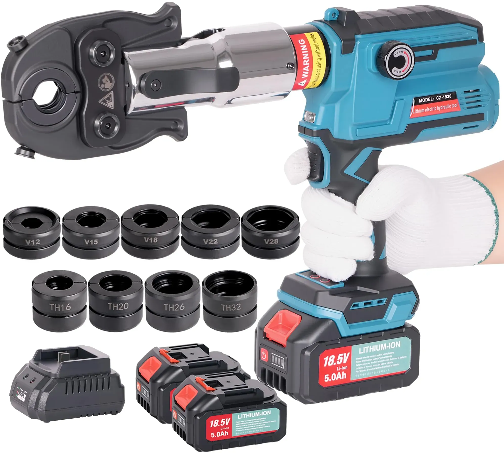 Verfügbarkeit: Auf Lager - Kategorie: Zangen - yckjxsma - Elektrisches Hydraulisches Crimpwerkzeug: Diese elektrische hydraulische Kabelcrimpmaschine verfügt über hochwertige Crimpeinsätze für Querschnitte von 10 bis 300 mm2 und ermöglicht präzises Crimpen von Kupfer- und Aluminiumkabeln für ein breites Anwendungsspektrum Verdickte Stempel: Diese elektrische hydraulische Crimp-Maschine mit hochwertigem Crimping-Stempeln, die Drahtgrößen von 10 bis 300 mm2 unterbringen, ist für die präzise Handhabung verschiedener Kupfer- und Aluminiumkabel ausgelegt. Zu den verfügbaren Durchmessern gehören 10, 16, 25, 35, 50, 70, 95, 120, 150, 185, 240 und 300 mm2 Einfach Zu Bedienen: Mit einem einfachen Anzieh- und Lösemechanismus, einem spiralförmigen Wärmeableitungssystem für schnelles Abkühlen und zwei 18 V/5,0 Ah Lithium-Akkus für Dauerbetrieb ist diese Maschine benutzerfreundlich und langlebig Benutzerfreundliches Design:Die Klemme kann um 360° gedreht werden, das Crimpen ist fest und die Positionierung ist präzise und erfüllt die internationalen Crimpanforderungen vollständig. Während des Druckentlastens festziehen und während des Druckentlastens lösen. Einfach zu verwenden. Die spiralförmige Wärmeableitung leitet die Wärme schnell ab und verhindert, dass die Maschine durchbrennt Vielseitige Anwendung: Dieses hydraulische Crimp-Tool eignet sich sowohl für Workshop als auch für Feldforschung und bietet eine kostengünstige Lösung für Crimpipes und ... Das AMZCNC 18V Akku Presszangen Set ist eine umfassende Lösung für verschiedene Rohrmaterialien und -konturen und bietet ein gutes Preis-Leistungs-Verhältnis mit vielen Backeneinsätzen. ![]() ![]() AMZCNC 18V Akku Presszangen Set V-Kontur Und TH-Kontur, für Kupferrohr, Edelstahlrohr, Edelstahlrohr Und Verbundrohr Backeneinsätze V12 V15 V18 V22 V28 Und TH16 TH20 TH26 TH32 incl