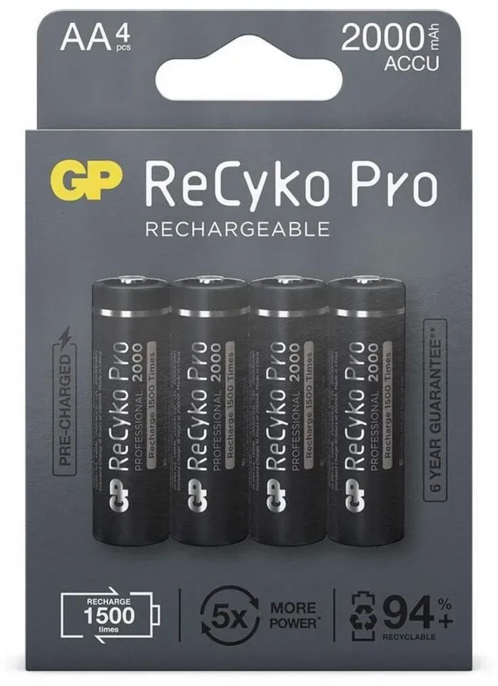 lieferbar-in 3-4 Werktagen bei dirGP Batteries 4x GP ReCyko Pro AA-Akku NiMH 2000mAh Akku-Set Mignon 2000 mAh (1,2 V), Mignon LR06 LR6 1,2V AA Akku Accu Batterie 4er Pack Wiederaufladbar schwarz