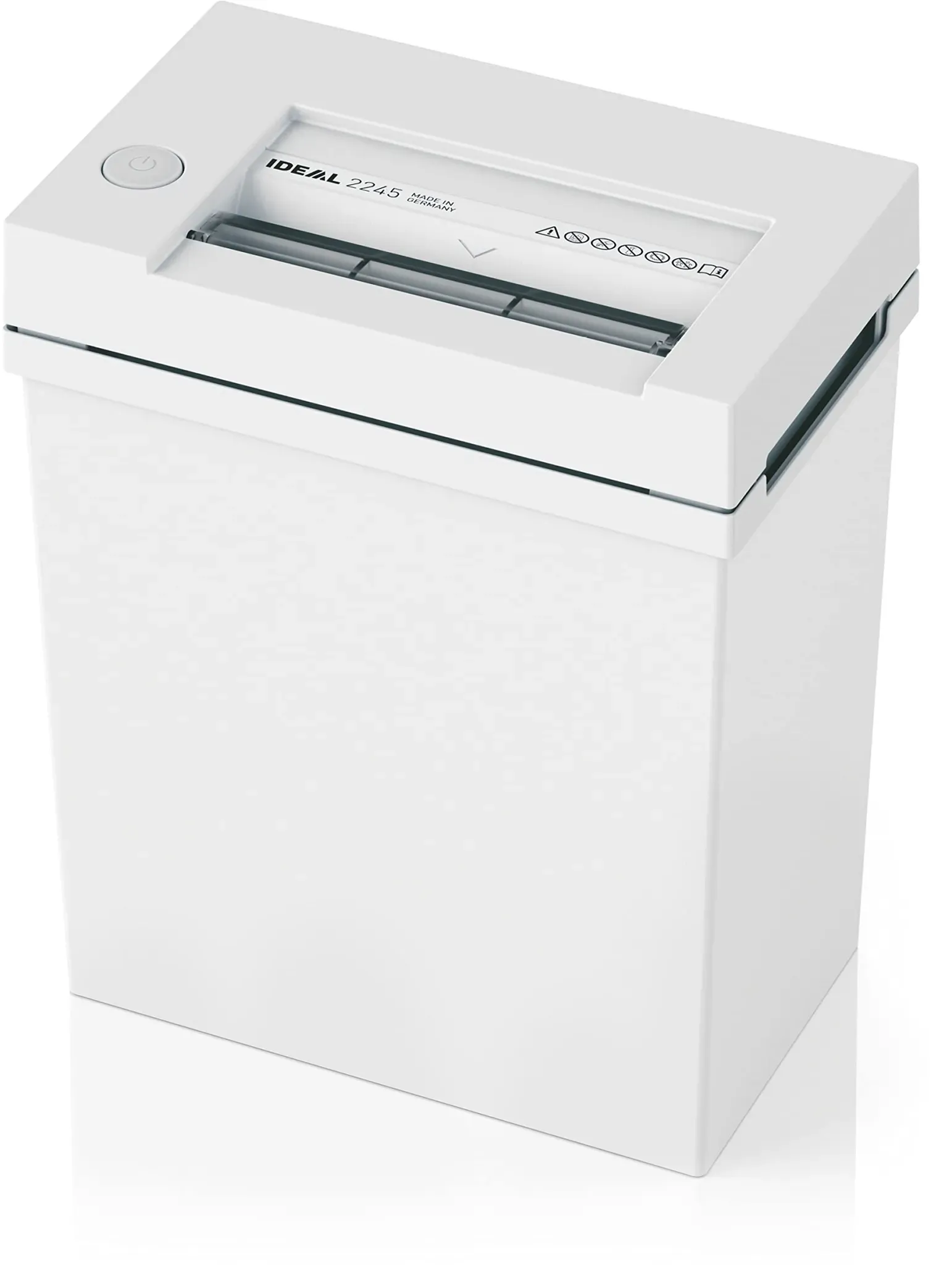 Kategorie: Aktenvernichter - Ideal - GTIN:4052305994467 - Sensible Dokumente DSGVO- und DIN-sicher vernichten: leistungsstarker Aktenvernichter mit Partikelschnitt/Kreuzschnitt. Ideal für Schreibtisch und Homeoffice. Made in Germany! Vernichtet bis zu 4 Blatt A4-Papier nach DIN 66399 in der Sicherheitsstufe P-5 (Partikelschnitt: 2 x 15 mm). Auch Heftklammern und Büroklammern vernichtet dieser Profi-Aktenvernichter problemlos. Sicherheitsklappe für den Anwenderschutz. Qualitäts-Messerwellen aus gehärtetem Spezialstahl mit LIFETIME- . Schnittgutbehälter (20 l Volumen) aus schlagfestem Kunststoff leicht zu entleeren. Hochwertiger Unterschrank sorgt für Stabilität des Schredders. Stromsparender Standby-Modus: automatisch komplette Netztrennung des Reißwolfs nach 15 Minuten. Mehrfunktionsschalter für Stand-by, Stopp (Aus), Rückwärtslauf und integrierte Leuchtanzeigen. Reversierautomatik mit automatischer Abschaltung verhindert Papierstaus. Verarbeitung mit Qualitätskomponenten und Materialien von, meist deutschen Herstellern. Für Langlebigkeit Made in Germany . Lieferumfang: 1 x IDEAL 2245 Aktenvernichter, Partikelschnitt 2 x 15 mm, Sicherheitsstufe P5, Maße 428 x 345 x 213 mm (H x B x T), Gewicht 7,5 kg - 257,00 Euro bei Amazon Marketplace Automotive - gefunden von billiger.de Der Bonsaii 3S23 ist ein leistungsstarker Aktenvernichter mit hoher Blattkapazität und Sicherheitsstufe P-4 für den professionellen Einsatz. ![]() Bonsaii 3S23 Aktenvernichter, bis zu 14 Blatt Papier, Partikelschnitt (Sicherheitsstufe P-4