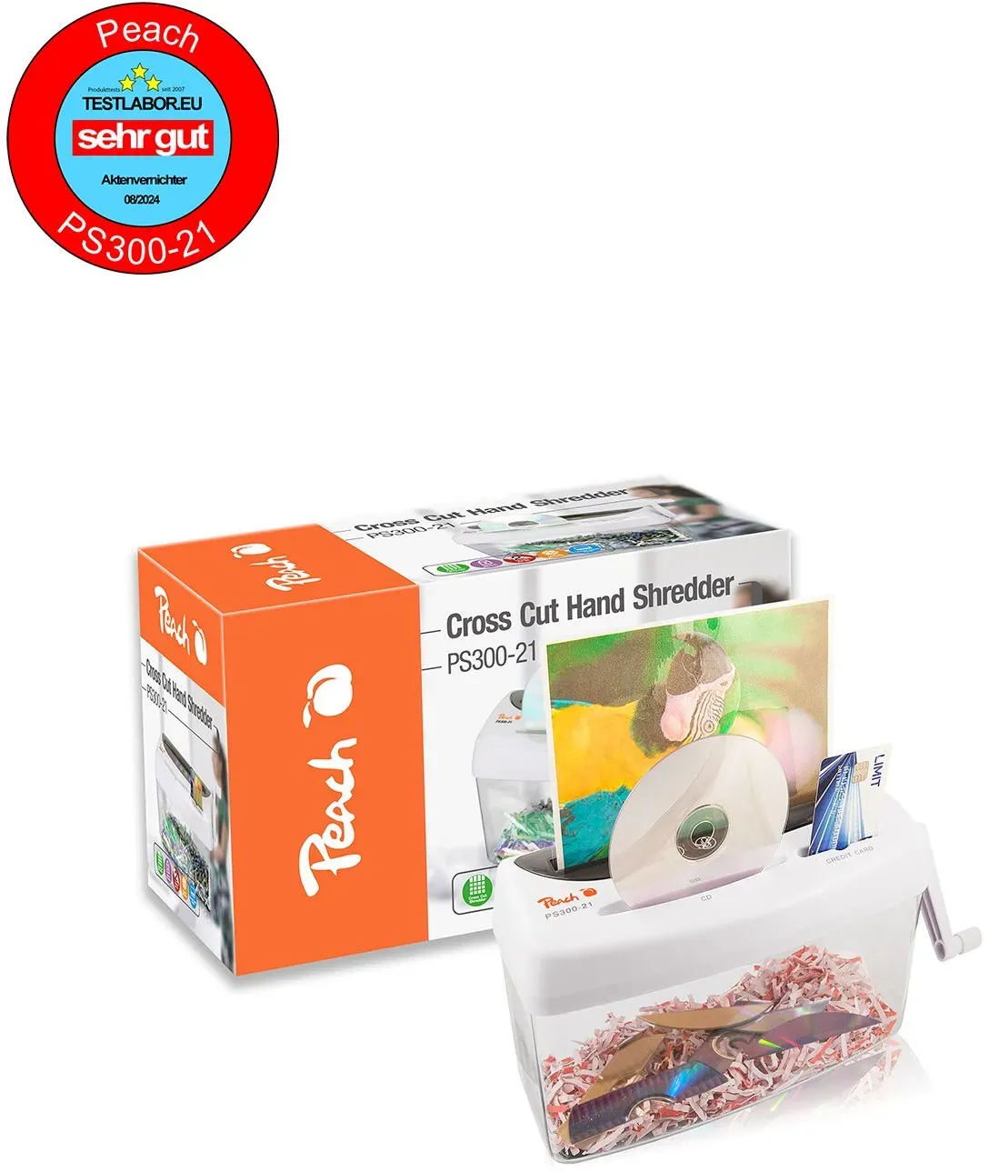 Zusammengefasst empfiehlt sich ein Modell mit Sicherheitsstufe P-4, automatischer Start/Stopp-Funktion, Rücklauffunktion, einem Behälter von mindestens 20 Litern und einer Blattkapazität von ca. 10 Blatt für den privaten oder kleinen Bürogebrauch. Bekannte Marken und Modelle mit diesen Merkmalen sind gut bewertet und bieten ein gutes Preis-Leistungs-Verhältnis. Beispiele für solche Aktenvernichter finden Sie unter Begriffen wie Aktenvernichter Kreuzschnitt P4 oder Aktenvernichter Kreuzschnitt 10 Blatt. Jetzt live Suche nach aktenvernichter kreuzschnitt starten! Empfohlene Aktenvernichter kreuzschnitt Angebote*Durch Käufe über Links zu Händlern kann diese Website eine Provision erhalten, u.a. durch das eBay Partner Network und das AmazonPartnerNetHier ist eine Auswahl von 15 repräsentativen und empfehlenswerten Aktenvernichtern mit Kreuzschnitt, die verschiedene Preisbereiche und Funktionen abdecken: Ein manuell betriebener Aktenvernichter, ideal für den stromunabhängigen Einsatz und kleine Mengen. ![]() ![]() Peach Partikelschnitt Aktenvernichter | 1 Blatt | 4 Liter | P-4 | Papier CDs und Kreditkarten | manuell betriebener Kreuzschnitt | Strom unabhängig | DSGVO konform | PS300-21