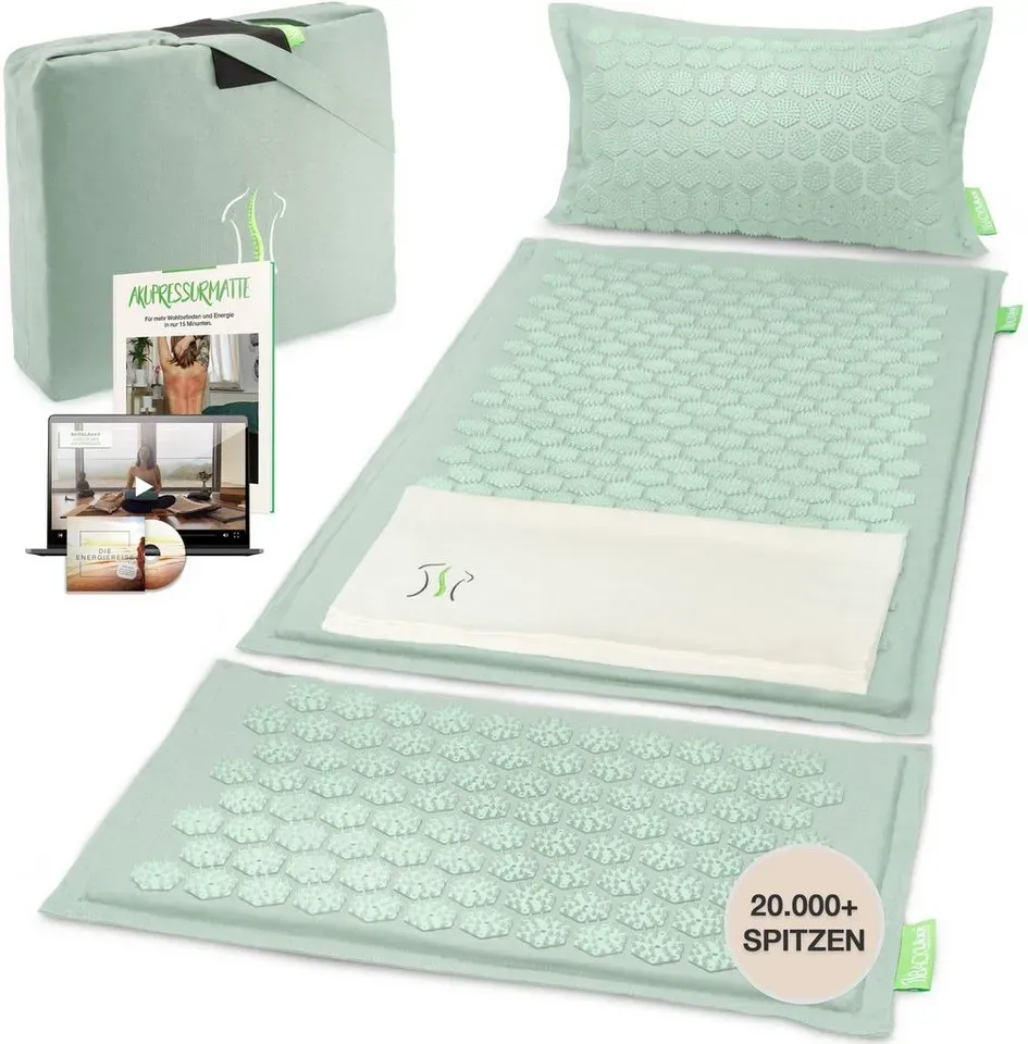 Zustand: Neu - 40,74 € / Stück - Akupressur - Bodhi Bodynova GmbH - 531SSG - EAN: 4250367932162 - EINFACHE ANWENDUNG: Gönn€™ dir deine tägliche Auszeit. Sobald du dich auf die Matte gelegt hast, spürst du belebende Reize, die die Blutzirkulation anregen, den Energiefluss fördern und die Faszien geschmeidig halten WIRKUNGSVOLL: Ideales Hilfsmittel zur Ganzkörpermassage. Verabschiede dich bei täglicher Anwendung von lediglich 10 bis 20 Minuten von Beschwerden wie Rücken- und Nackenschmerzen, anhaltender Müdigkeit, Stress, Verspannungen und Durchblutungsstörungen TRADITION: Sanfter Druck aktiviert die zahlreichen Akupressurpunkte im Körper. Die Akupressurtherapie ist ein Bestandteil der Lehren der traditionellen chinesischen Medizin (TCM) und wirkt wie eine Massage PRAKTISCH & BEQUEM: Einfach und platzsparend im mitgelieferten Nylonbeutel zu verstauen, für Entspannung überall. Auch als Deluxe-Variante mit zusätzlicher Fußmatte für die Fußreflexzonen erhältlich PRODUKTDETAILS: Akupressur-Spitzen aus ABS Kunststoff | Bezug aus 100 % Baumwolle | Tragetasche aus Nylon | VITAL Akupressur Massagematte: 127 x 48 cm mit 13.860 Spitzen | VITAL Akupressur-Kissen: 33 x 24 x 9 cm mit 1.452 Spitzen | Gewicht: ca. 1,4 kg - Verkäufer: Bodynova GmbH im amazon.de Marketplace ![]() ![]() BACKLAxx® BACKLAxx® Akupressurmatte "Magnum" (Akupressurmatten Set, 5teilig + gratis-Download) beige
