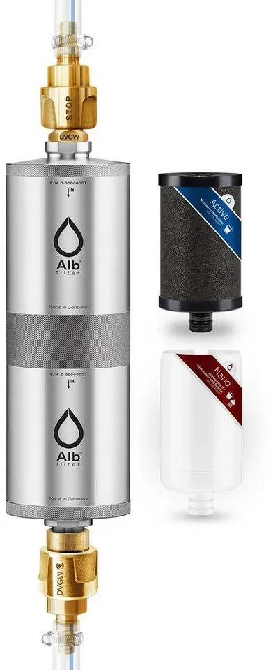 Kategorie: Wasseraufbereitung - Alb Filter - GTIN:4260590613561 - Alb Connect Active und Nano Doppelstufen Trinkwasserfilter. Kokos Blockaktivkohle in Verbindung mit gebündelten Hochleistungsmembranen. Made in Germany Filtration von Chlor, organischen Schadstoffen und Schwermetallen. Verbesserung von Geruch, Geschmack und Farbe. Reduktion von medikamentösen Rückständen, Hormonen uvm. Wirksamer Schutz vor Keimen und Krankheitserregern ( ~99,99% ) E. coli Bakterien, Vibrio Cholerae, Shigellen, Salmonellen uvm. Mobiler Einsatz: Mit praktischem Gardena Schlauchanschluss, Hahnverbinder und Schlauch. DVWG zertifiziert und lebensmittelecht. Trinkwasser-Filter für Boot, Yacht, Schiff, Camping, Wohnwagen und Wohnmobil Schnelle und variable Befüllung von Tank, Kanister und Wasserbehälter aus externen Wasserstellen. 100% Natürliche Filtermaterialien, Made in Germany - 299,90 Euro bei Amazon Marketplace Home Improvement - gefunden von billiger.de Das Untertisch-Set in Edelstahl Natur ist eine elegante und dauerhafte Lösung für die Wasserfiltration direkt an der Entnahmestelle. ![]() ![]() Alb Filter® FUSION Active+Nano Trinkwasserfilter gegen Schadstoffe und Keime | Untertisch | Made in Germany Edelstahl Natur