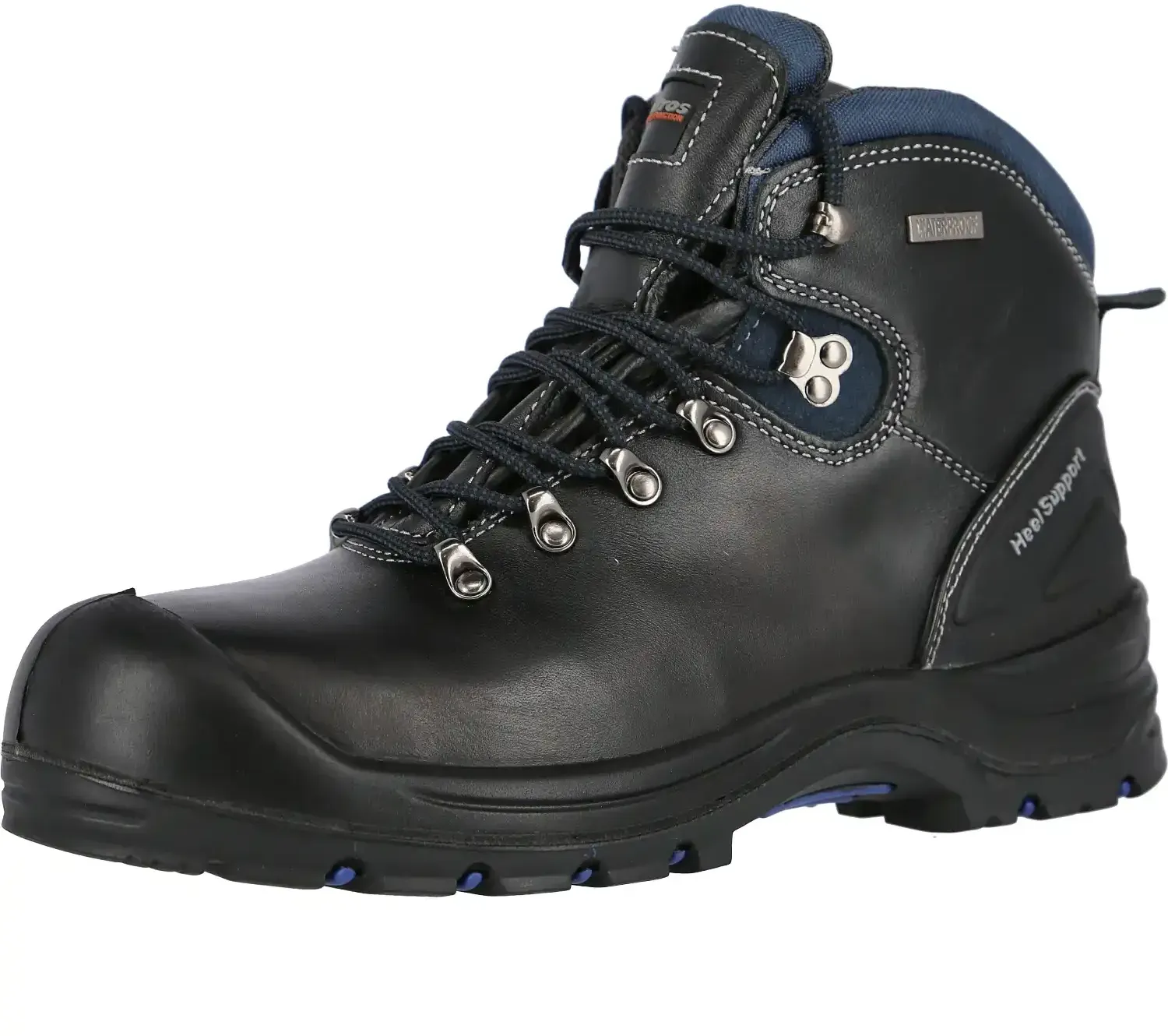 Kategorie: Arbeits- & Schutzkleidung - Albatros - GTIN:4018623968030 - Sicherheitshochschuhe S3 'X-TREME CTX MID' - albatros Die Sicherheitshochschuhe S3 'X-TREME CTX MID' von albatros sind der ideale Begleiter für alle Anwendungen in der Industrie, Montage, Bau, Handwerk oder im Agrarbereich. Besonders für den Agrarbereich eignen sich die Schuhe, da diese mit einem Schaft aus speziell veredeltem Multishield Leder ausgestattet sind. Bei richtiger Pflege ist Multishield beständig gegen Gülle, Batteriesäure, öle, Laugen und ist zudem stalltauglich. Außerdem ist er wasserdicht, atmungsaktiv, flammhemmend und schimmelbeständig auch unter heißen Bedingungen. Das atmungsaktive Funktionsfutter in Verbindung mit einer COA.TEX Membran macht den Stiefel wasserdicht und atmungskativ. Außerdem wird Feuchtigkeit in Form von Schweiß schnell nach außen transportiert. Die 'Allterain'-Stollensohle aus Nitrilgummi (HRO) zeichnet sich durch hervorragende Rutschfestigkeit (SRC) auf glatten Böden und unebenem Gelände aus. Die geschäumte Zwischensohle federt den Fuß beim Gehen weich ab und erhöht das Energieaufnahmevermögen im Fersenbereich. Eine hochgezogene überkappe schützt den Schuh vor Abnutzung gerade bei knieenden Tätigkeiten. Der TPU-Fersenschutz bildet mit der Nitrilgummisohle eine perfekt abgestimmte Funktionseinheit, gibt zusätzlichen Halt und verstärkt die Stabilität sowie die Führung des Schuhs. Um die nötige Sicherheit kümmert sich die strapazierfähige Schutzkappe aus Stahl und ... Ein höherpreisiges Angebot von Conrad.de für die Albatros X-TREME CTX MID 631750-46 Sicherheitsstiefel in Größe 46, das Premium-Qualität und Service verspricht. ![]() ![]() Albatros X-TREME CTX MID 631750-46 Sicherheitsstiefel S3 Schuhgröße (EU): 46 Schwarz 1 St.
