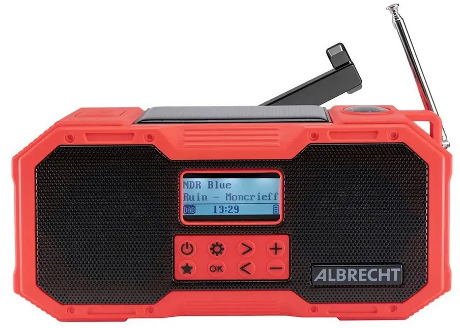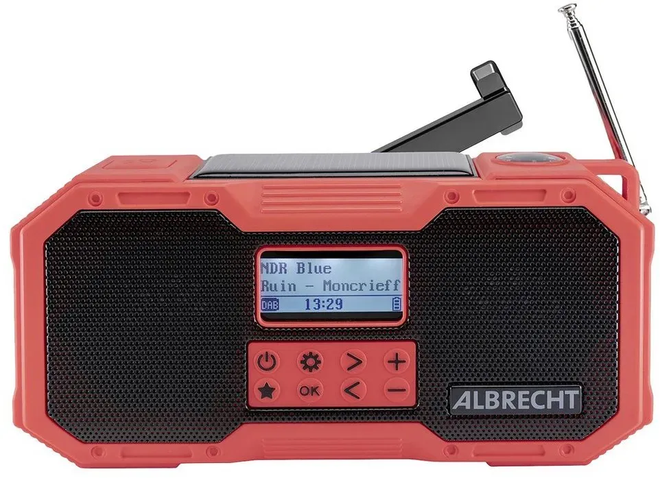 Albrecht - EAN: 4032661279118 - Albrecht DR 112 DAB+ Outdoor- bzw. Kurbelradio - bei technikdirekt.de - aus Yadore Produktdaten Dieses Angebot von Amazon.de Marketplace ist mit 12 Händlern sehr beliebt und bietet eine gute Auswahl an Verkäufern. ![]() ![]() Albrecht DR 112, tragbares DAB+/UKW Outdoor Kurbelradio, 27911, SOS-Notruf, Taschenlampe, Solarmodul, PowerBank, IPX5 Wasserschutz Schwarz,rot