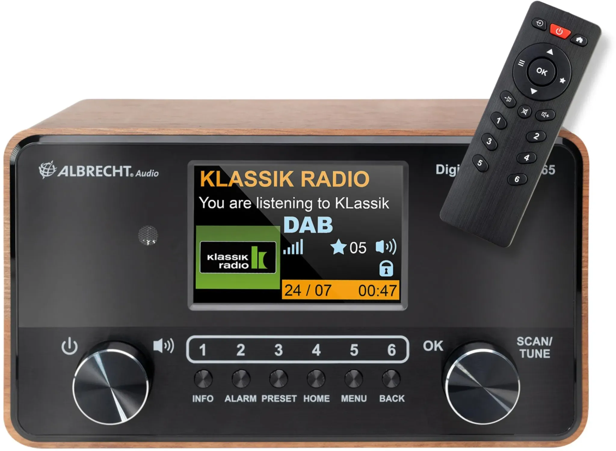 Lieferbar ab 03.11.2025, Lieferzeit (sobald verfügbar): 1-2 WerktageAlbrecht DR 865 Tischradio DAB+, UKW AUX Barrierefrei, Inkl. Fernbedienung, Tastensperre, Weckfunktion Holz (dunkel)