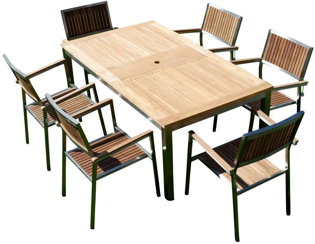 Gewöhnlich versandfertig in 3 bis 4 TagenALEOS. Gartengarnitur Edelstahl Teak Set: Ausziehtisch 160/220 x 90 cm + 6 Teak Sessel A-Grade Teak Holz Serie Kuba Gastroqualität