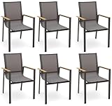 Gewöhnlich versandfertig in 3 bis 4 TagenALEOS. Gartenstuhl mit Armlehne Gartensessel Stapelstuhl Stapelsessel Sessel Trinidad Aluminium Textilgewebe Teak stapelbar, Größe:6 Stück