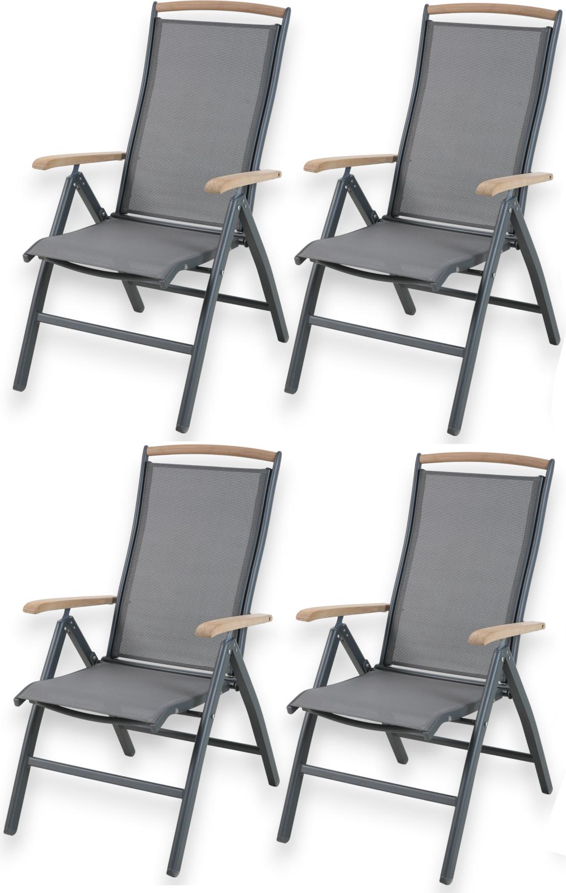 Gewöhnlich versandfertig in 3 bis 4 TagenALEOS. Hochlehner Trinidad Aluminium Gartensessel Hochlehner mit Armlehnen echt Teakholz 7-Positions Sessel 7-Fach verstellbar Outdoor Textilgewebe klappbar, Größe:4 Stück