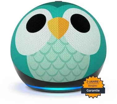 Verfügbarkeit: Sofort lieferbar, Lieferzeit max. 1-3 Werktage - Kategorie: Lautsprecher - Amazon - GTIN:0840268915742 - €¢ Kindersicherung: Zeitlimits für bis zu 4 Profile €¢ Nach vorne abstrahlender 44-mm-Lautsprecher, Lossless High Definition €¢ Kompaktes Design, dass in jedes Zuhause passt. €¢ Dualband-WLAN unterstützt 802.11a/b/g/n/ac (2,4 und 5 GHz) €¢ Nützlich für die ganze Familie Unser Weihnachtsgruß: Versandkostenfrei bis 23.12.! - 71,90 Euro bei computeruniverse.net - gefunden von billiger.de Cyberport bietet den Amazon Echo Dot (5. Gen.) Kids im Eulen-Design zu einem wettbewerbsfähigen Preis an. ![]() ![]() Amazon Echo Dot (5. Gen.) Kids smarter Lautsprecher mit Alexa Eulen-Design