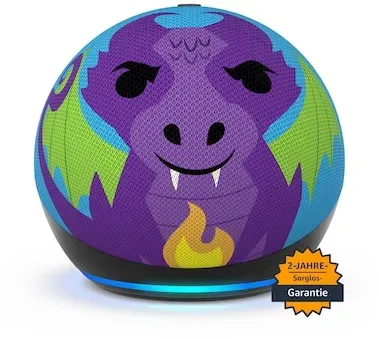 4 Händlerangebote bei billiger.de - Kategorie: Lautsprecher - Amazon - Ganz großer Klang für grenzenlose Fantasie Wir stellen vor: Echo Dot Kids €“ Unser beliebtester und niedlichster smarter Lautsprecher mit Alexa, für Kinder entwickelt. In tollem Design und mit verbessertem Lautsprecher, der klarere Stimmen, tieferen Bass und kraftvollen Sound bietet. Inhalte von Amazon Kids+ inklusive. Kinder können Alexa bitten, Musik abzuspielen oder Gutenachtgeschichten vorzulesen. Alexa kann auch bei den Hausaufgaben helfen und noch vieles mehr. Mehr über Amazon Kids für Alexa erfahren. Ein gutes Gefühl für Eltern Auch aus der Ferne haben Eltern immer die Kontrolle. Mit der intuitiven Steuerung können Eltern ganz einfach sichere Grenzen festlegen, innerhalb derer ihre Kinder spielen und Inhalte erkunden dürfen. Benutzerfreundliches Eltern Dashboard Mit der Kindersicherung kannst du für bis zu 4 Kinderprofile Bildschirmzeiten begrenzen, Lernziele festlegen und Inhalte verwalten. Mehr zum Amazon Eltern Dashboard kannst du hier erfahren. Kindgerechte Unterhaltung auf allen Geräten Alexa gibt automatisch altersgerechte Antworten, filtert Songs mit anstößigen Inhalten heraus und vieles mehr. Außerdem kannst du mit Filtern festlegen, auf welche Inhalte die Kinder Zugriff haben €“ die Entscheidung liegt stets bei dir. Lernen und entdecken mit Alexa €žAlexa, wie weit entfernt ist der Mond?€œ So viel zu entdecken Echo Dot Kids steckt voller Skills und Funktionen die ... Für Familien ist der Amazon Echo Dot Kids 5. Generation im Drachen-Design eine spielerische und kindgerechte Option. ![]() ![]() Amazon Echo Dot Kids 5. Generation Drachen-Design