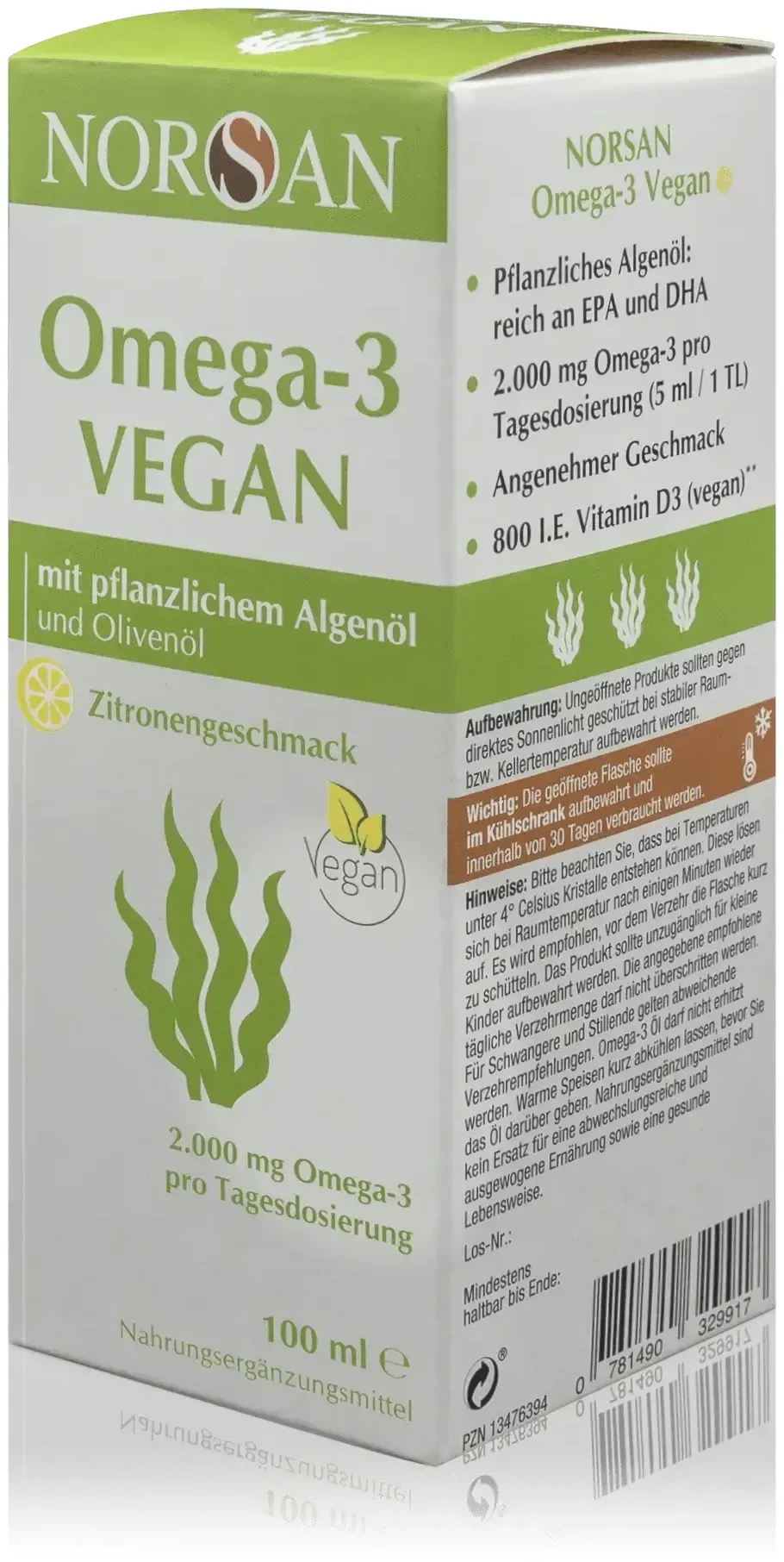 232,00 /l - Kategorie: Nahrungsergänzungsmittel - NORSAN - GTIN:0781490329917 - PZN:13476394 - description - 23,20 Euro bei rote-place.de - gefunden von billiger.de ![]() ![]() NORSAN Omega-3 Vegan Kapseln 80 St.