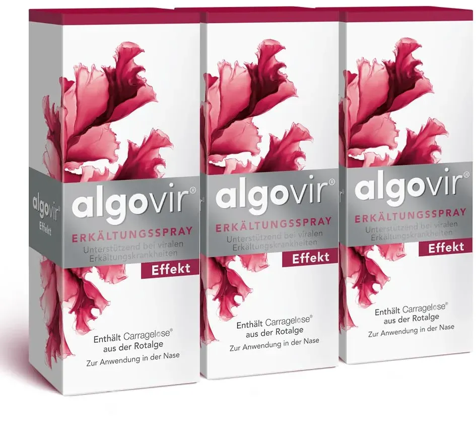 Verfügbarkeit: 1-2 Werktage - 11,66 €/St - Kategorie: Nahrungsergänzungsmittel - ALGOVIR - GTIN:4150800416474 - Algovir Effekt Erkältungsspray Dreierpac 3 St - rezeptfrei - von Hermes Arzneimittel GmbH - Spray - 3 St - 34,99 Euro bei DocMorris Apotheke - gefunden von billiger.de Ein großer Dreierpack des Algovir Effekt Erkältungssprays, der sich für den langfristigen Gebrauch oder Familien eignet. ![]() ![]() Hermes Arzneimittel algovir® Effekt Erkältungsspray 3 x 20 ml zur Abwehr von Erkältungsviren, kann vor einer Erkältung schützen, Nasenspray mit naturbasiertem Wirkstoff aus der Rotalge