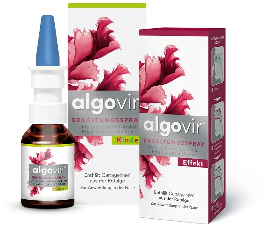 51.35 - Husten & Erkältung Erkältungs- und Grippetreatments Erkältung & Schmerzen Mittel gegen Schnupfen Nasenspray Medizin & Heilmittel - EAN:4058900074511 - Anwendungsgebiet von Algovir Kinder ErkältungssprayAlgovir Kinder Erkältungsspray ist ein Spray gegen Erkältung, zur unterstützenden Behandlung von viralen Erkältungskrankheiten. Algovir Kinder Erkältungsspray setzt auf dasselbe Wirkprinzip wie algovir R Effekt, das Erkältungsspray für Erwachsene - und zwar auf die Eigenschaften des langkettigen Wirkstoffmoleküls Carragelose R . Der natürliche Wirkstoff wird aus Rotalgen gewonnen und sorgt dafür, dass sich über die Nase eingedrungene Viren in ihm verfangen. Die Carragelose R legt sich dabei wie ein Schutzfilm auf die Nasenschleimhaut und wirkt als physikalische Barriere: Die Erkältungsviren verfangen sich in der Struktur der Carragelose R und können dadurch nicht mehr in die Zellen der Nasenschleimhaut eindringen. Das verhindert, dass sich die Erkältungsviren in den Schleimhautzellen vermehren. Wirkungsweise von Algovir Kinder ErkältungssprayMit dem Algovir Kinder Erkältungsspray können virale Erkältungskrankheiten ursächlich behandelt werden. Rechtzeitig angewendet kann Algovir Kinder Erkältungsspray den Ausbruch der Erkältung verhindern oder die Erkältungszeit um bis zu 3 Tage verkürzen. Zudem werden die Erkältungssymptome gemildert und das Rückfallrisiko wird reduziert. Dies konnte in klinischen Studien gezeigt werden. Algovir Kinder Erkältungsspray kann ab den ... Dieses Angebot für das Kinder Erkältungsspray ist bei Amazon Marketplace-Händlern beliebt und bietet einen guten Preis. ![]() ![]() algovir® Kinder Erkältungsspray 20 ml | zur Abwehr von Erkältungsviren | kann vor einer Erkältung schützen | Nasenspray ideal für Kinder zwischen 1 und 5 Jahren