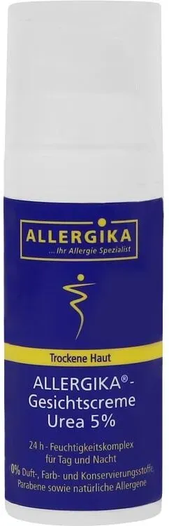33.32 - Gesichtscremes Kosmetik & Körperpflege Gesichtspflege Gesichtscreme - EAN:4051452030851 - Anwendungsgebiet von Allergika Gesichtscreme urea 5%Eine Gesichtscreme mit einem ausgewählten Feuchtigkeitskomplex aus Urea und Glycerin. Der Einsatz von Allergika Gesichtscreme urea 5% gleicht übermäßigen Feuchtigkeitsverlust der Haut aus. Dies wird Ihnen helfen, Ihr Gleichgewicht wiederzufinden. Das Urea in der Allergiecreme fettet nicht, pflegt die Haut mit feuchtigkeitsspendendem Urea und hält sie geschmeidig. Wirkungsweise von Allergika Gesichtscreme urea 5%Die hydroaktiven Inhaltsstoffe Urea (5 %) und Glycerin (5 %) spenden Feuchtigkeit, durch ihr hohes Wasserbindungsvermögen. Zusätzlich bildet die Creme einen schützenden Lipidfilm auf der Haut, der ein übermäßiges Verdunsten von Feuchtigkeit verhindert. Panthenol und Vitamin E tragen zur Regeneration der Hautzellen bei, die Haut wird glatt und elastisch. Das Spannungsgefühl wird reduziert und die Haut wird glatter.Wirkstoffe / Inhaltsstoffe / ZutatenAllergika Gesichtscreme urea 5% enthält: Urea, Glycerol, PanthenolGegenanzeigenBei bekannter Überempfindlichkeit gegenüber einem der oben genannten Inhaltsstoffe sollte dieses Produkt nicht angewendet werden. Nicht auf Schleimhäuten und an den Augen anwenden.DosierungMorgens, abends und bei Bedarf einen Pumpstoß Allergika Gesichtscreme urea 5% auf die gereinigte Haut im Gesicht sowie an Hals und Dekolleté auftragen und sanft einmassieren. Augenpartie aussparen. Nicht auf ... Dieses Angebot ist das günstigste für die Allergika Gesichtscreme Sensitive und bietet eine gute Möglichkeit, sehr empfindliche Haut zu pflegen. ![]() ![]() Allergika Gesichtscreme sensitive 50 ml Creme