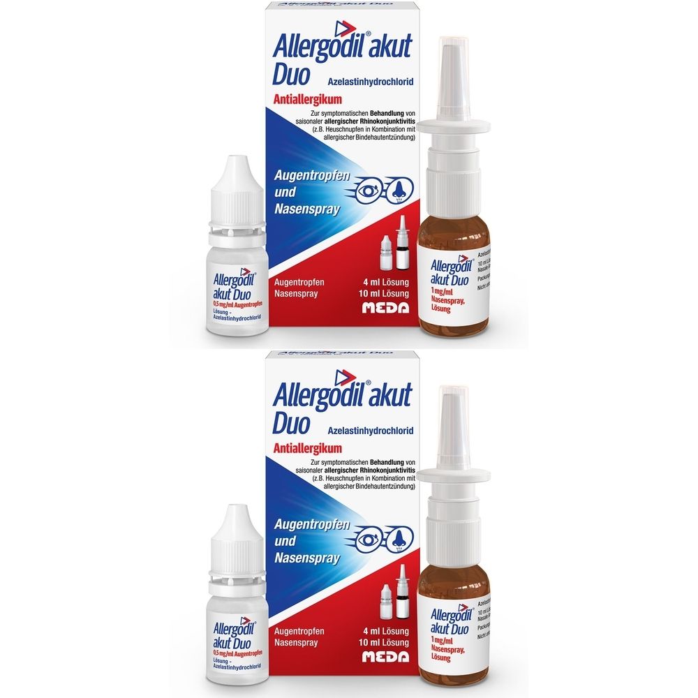 Der angezeigte Preis könnte seit dem letzten Update gestiegen sein - EAN: 4150081111952 - ANTIALLERGISCHES NASENSPRAY: Das Spray wird zur Linderung der Allergiesymptome bei Heuschnupfen (saisonale allergische Rhinitis) angewendet und eignet sich für Erwachsene und Kinder ab n GEZIELTE BEHANDLUNG DER NASE: Das Antiallergikum wird... - Zustand: NEW - bei SHOP APOTHEKE - gefunden von Buycentral Dieses umfangreiche Kombipack mit zwei Nasensprays und zwei Augentropfen ist die umfassendste Lösung für starke und anhaltende Allergiesymptome. ![]() Allergodil akut Duo 4ml AT akut/10ml NS x2 2x1 St Kombipackung