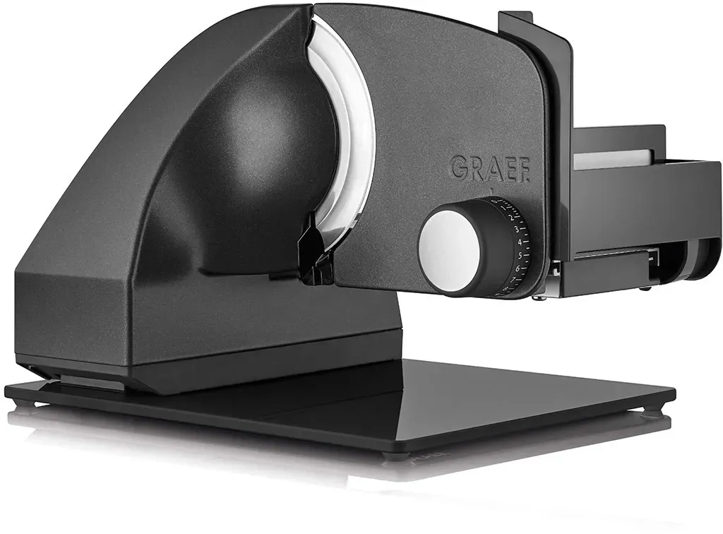 Zustand: Gebraucht - Allesschneider Elektrische Allesschneider - GRAEF. Graef - C95EU - EAN: 4001627037291 - Freitragender Premium-Allesschneider Handmade in Germany aus Vollmetall mit edler Glasbodenplatte 30° Kippfunktion für ein einfaches Auffangen und müheloses Schneiden verschiedenster Lebensmittel Edelstahl-Wellenschliffmesser (Ø 170 mm) - für hauchzarte Schneideergebnisse und noch mehr Aroma Kraftvoller, flüsterleiser 170-Watt-Kondensatormotor mit n Motor , Stufenlose Schnittstärkeneinstellung von 0 - 20 mm Inkl. Edelstahltablett und Kombi-Aufsatz PRO (Restehalter & MiniSlice in einem) - 3 Händler im amazon.de Marketplace ![]() ![]() GRAEF. Allesschneider Master M95, eisenglimmergrau M95EU