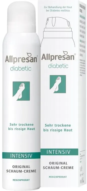 - - ALLPRESAN diabetic Inten.+Repair m.Urea Schaum-Cr. 125 ml - Versandkostenfrei: false - - - bei medikamente-per-klick.de - gefunden von shopping24 Ein sehr preiswertes 200 ml Angebot des Fuß Intensiv Schaums, das eine gute Ersparnis bietet. ![]() ![]() Allpresan Diabetic - Fuß Intensiv eBay Schaum - 200ml PZN 06734536