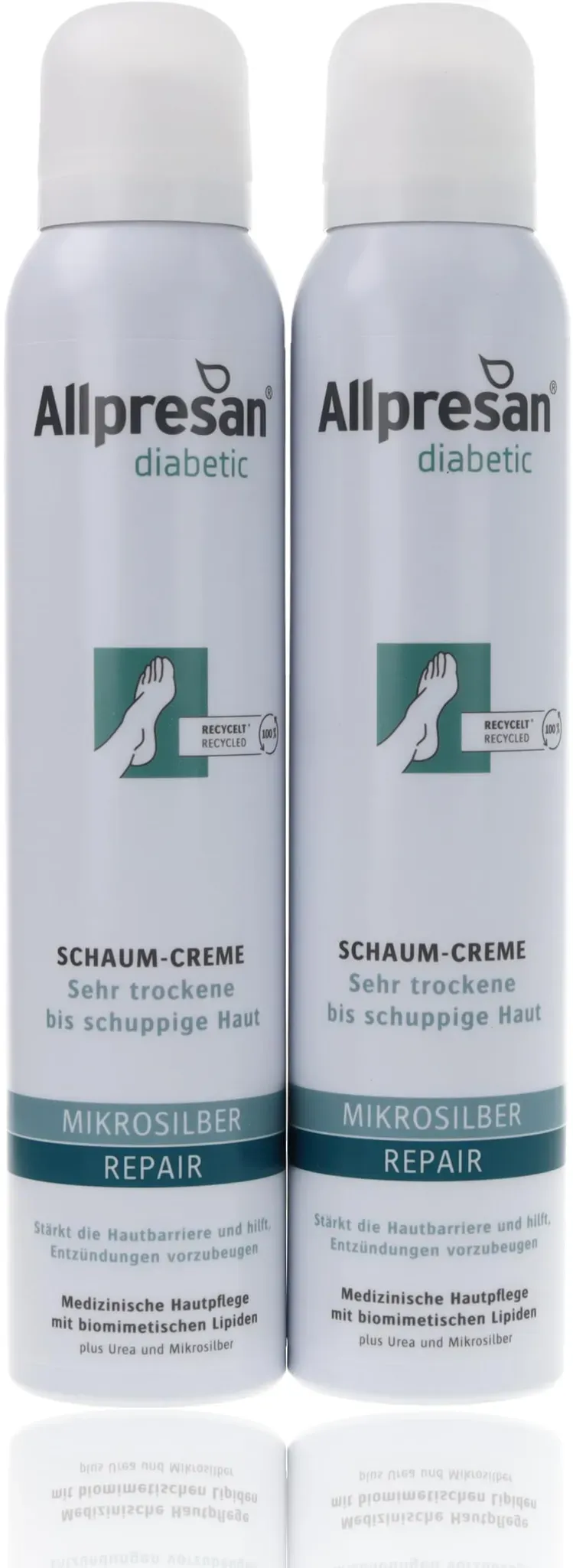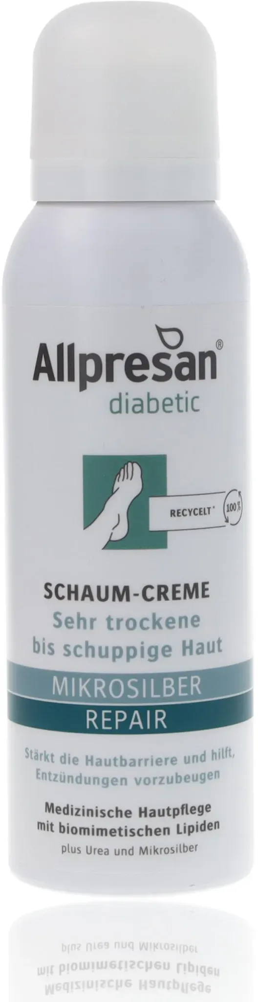 Der angezeigte Preis könnte seit dem letzten Update gestiegen sein - EAN: 4038235202865 - Allpresan diabetic INTENSIV + REPAIR Schaum-Creme mit UreaDie Allpresan diabetic INTENSIV + REPAIR Schaum-Creme mit 8 % Urea ist speziell für die Pflege von sehr trockener und rissiger Haut bei Diabetes entwickelt worden. Diese Schaum-Creme versorgt... - Zustand: NEW - bei SHOP APOTHEKE - gefunden von Buycentral Dieses Angebot bietet eine 125 ml Mikrosilber+Repair Schaum-Creme, die speziell bei sehr trockener bis schuppiger Haut hilft. ![]() ![]() Allpresan diabetic MIKROSILBER + REPAIR - Fußschaum mit Mikrosilber für sehr trockene bis schuppige Haut bei Diabetes mellitus - 125 ml